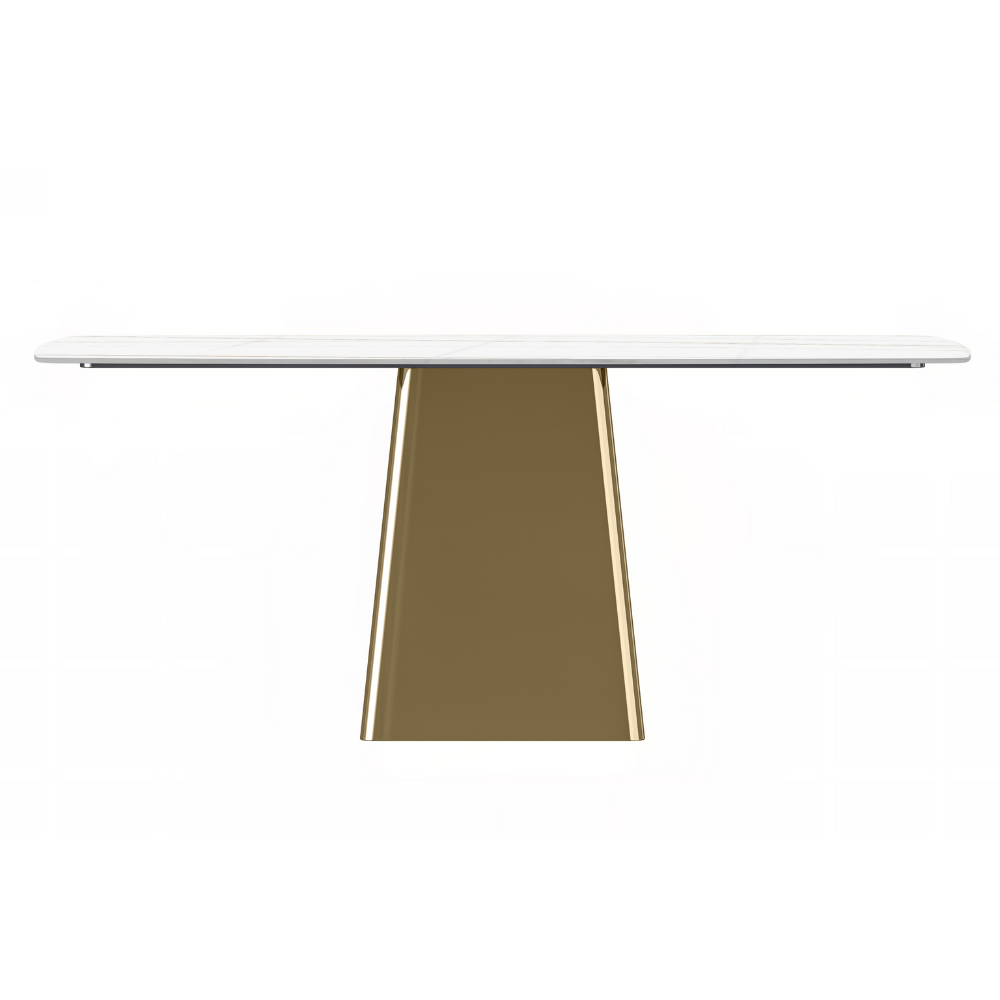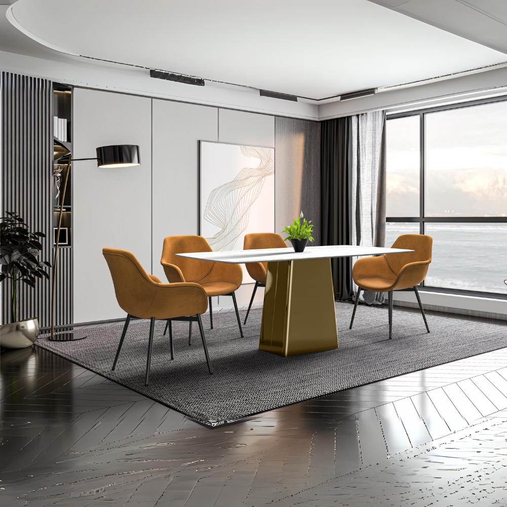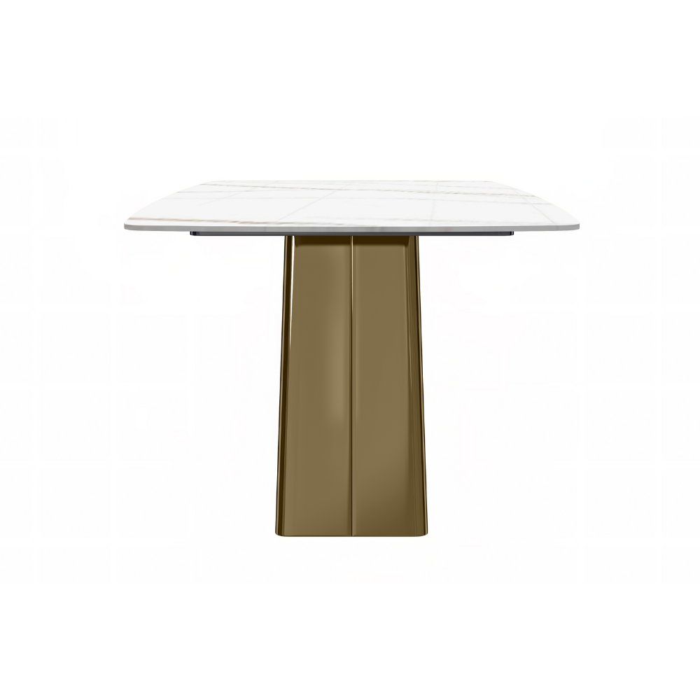 Quinix Series Dining Table, Gold Base With 62" White/Gold Sintered Stone Top