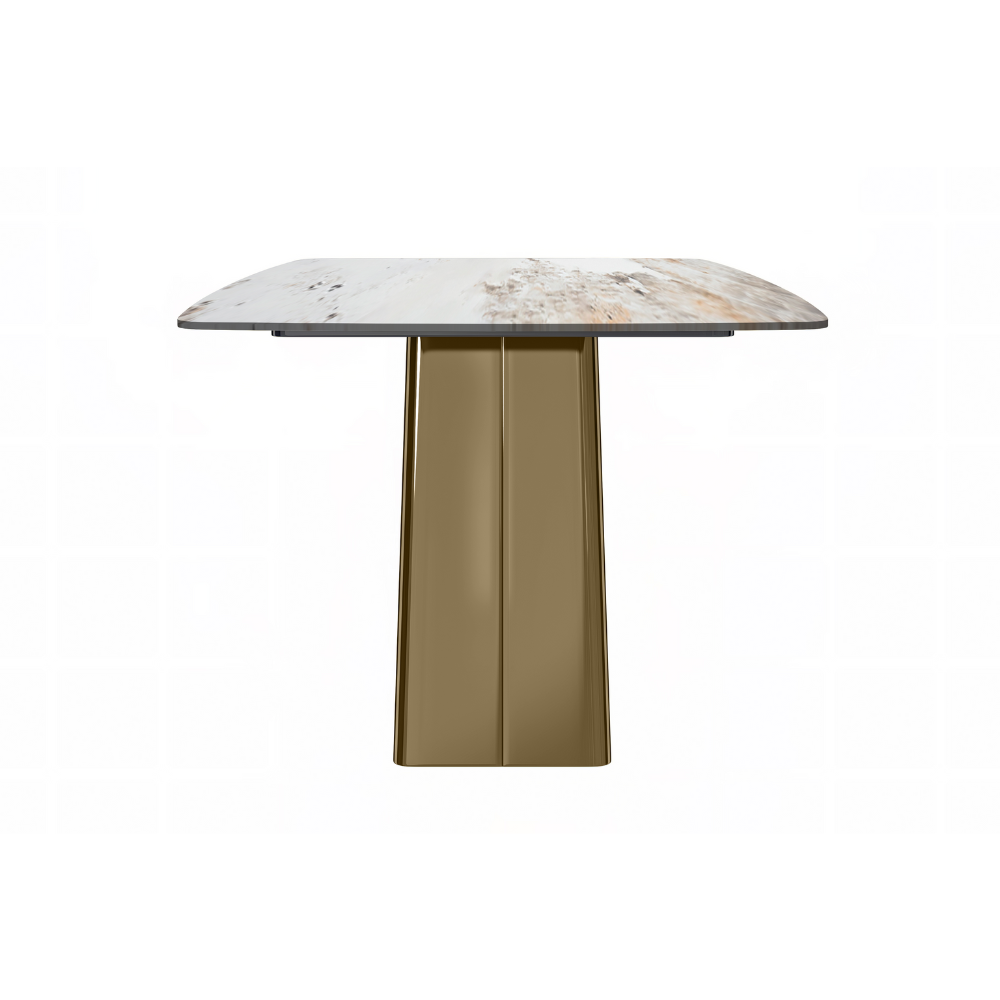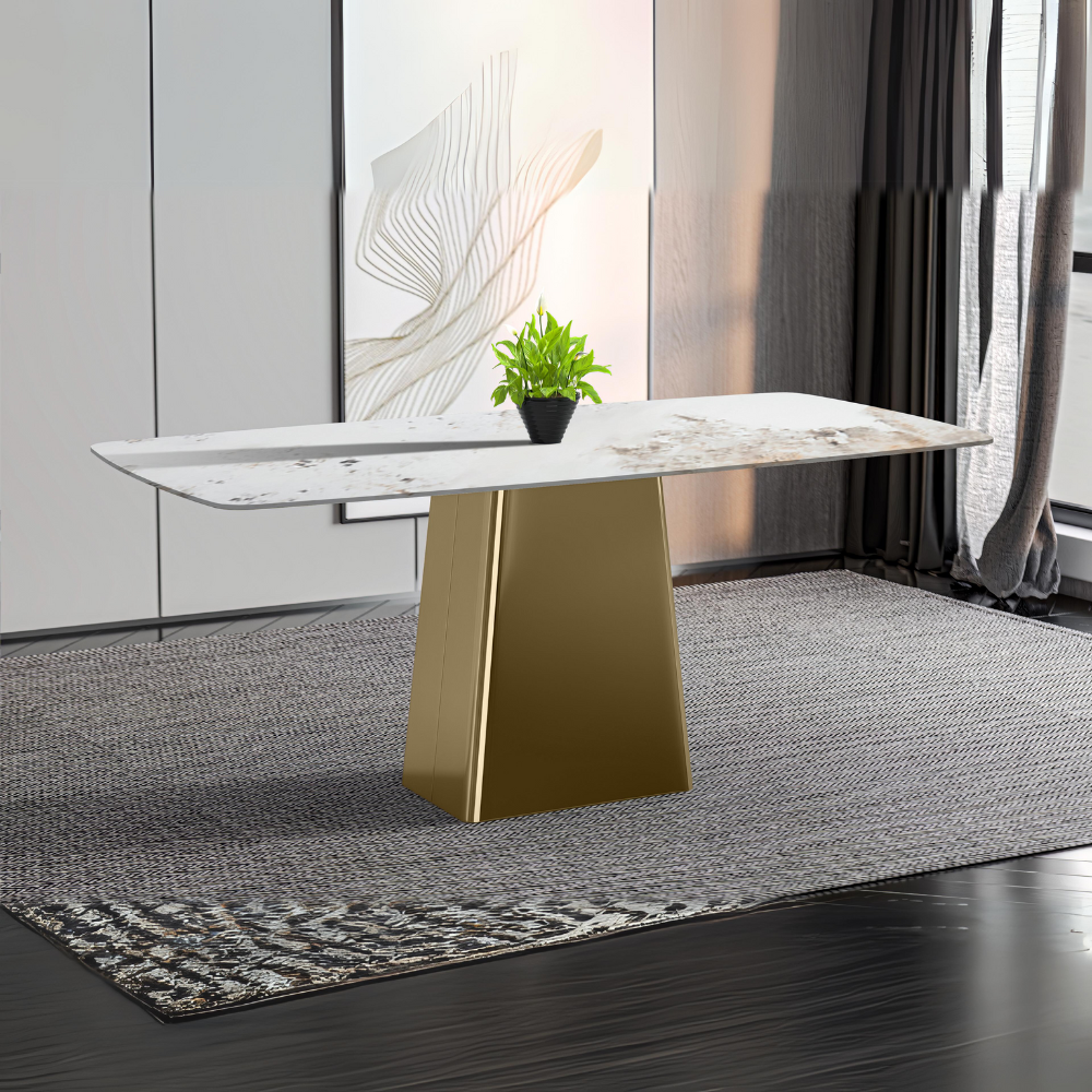Quinix Series Dining Table, Gold Base With 62" White Grey Sintered Stone Top