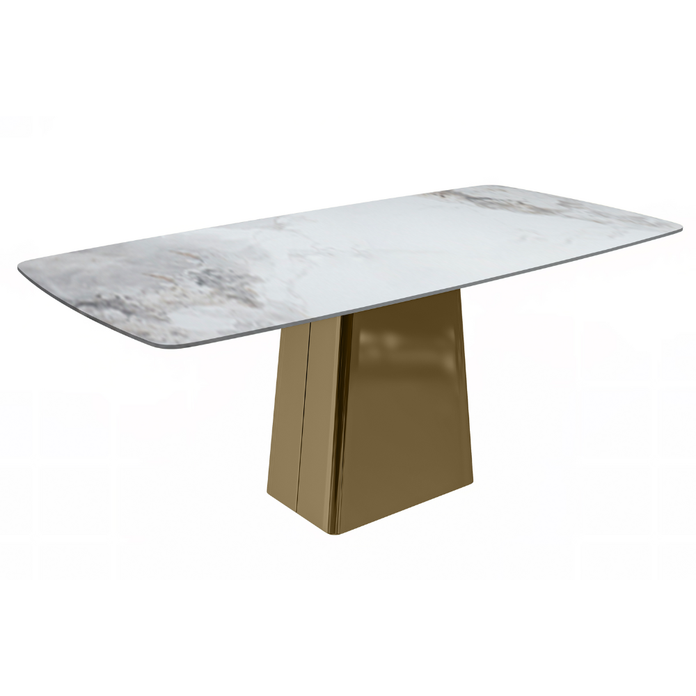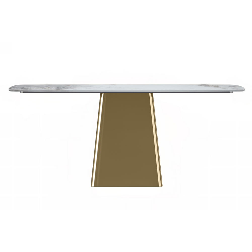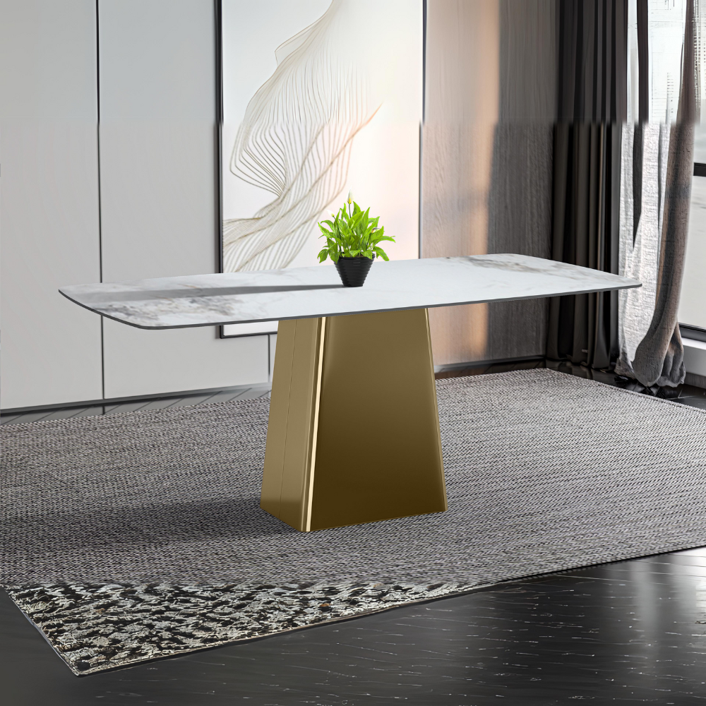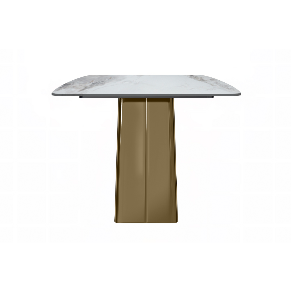 Quinix Series Dining Table, Gold Base With 71" Medium Grey Sintered Stone Top