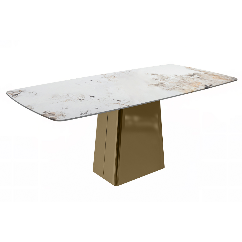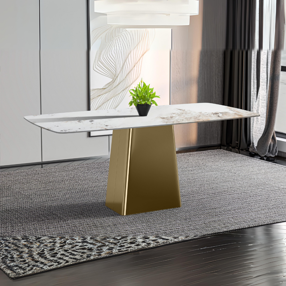 Quinix Series Dining Table, Gold Base With 71" White Grey Sintered Stone Top