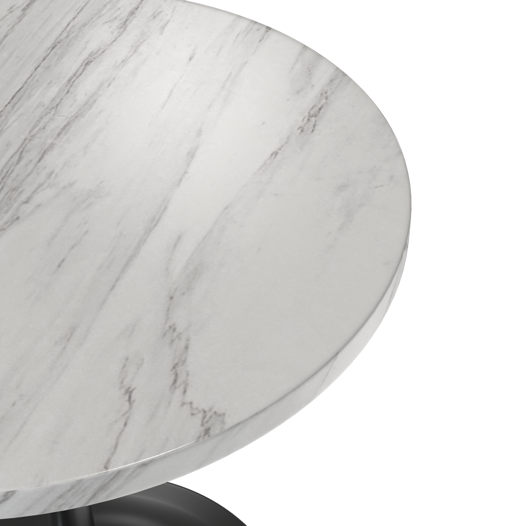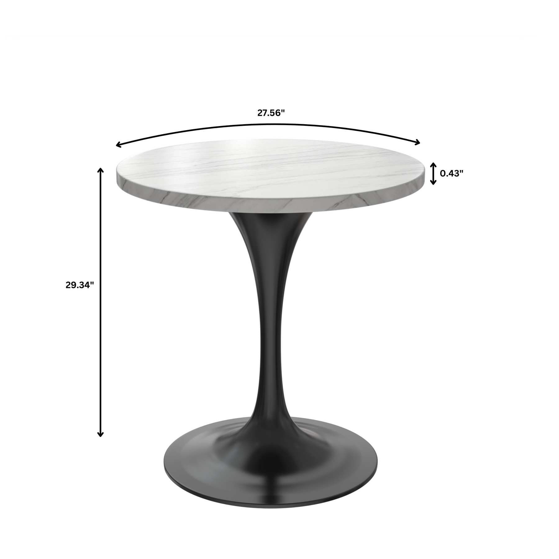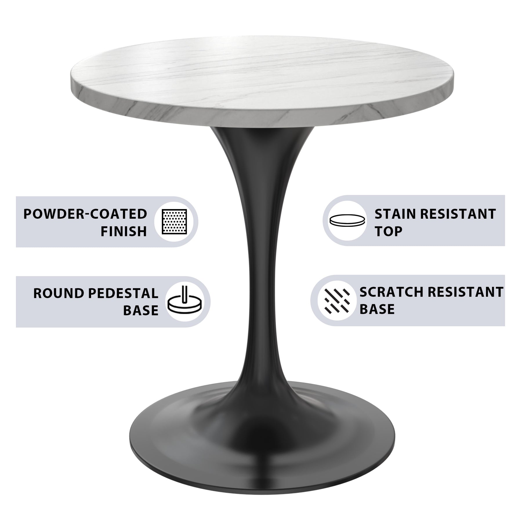 - Providing a sturdy foundation for the stylish tabletop is the black steel pedestal base. Steel is known for its durability, making it an ideal material for a piece of furniture that is meant to withstand the test of time.