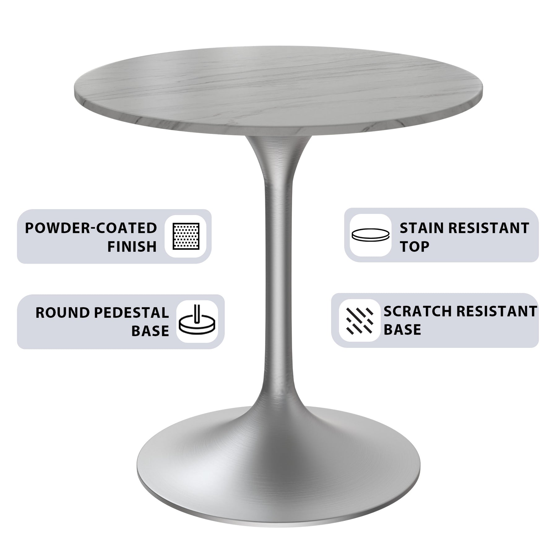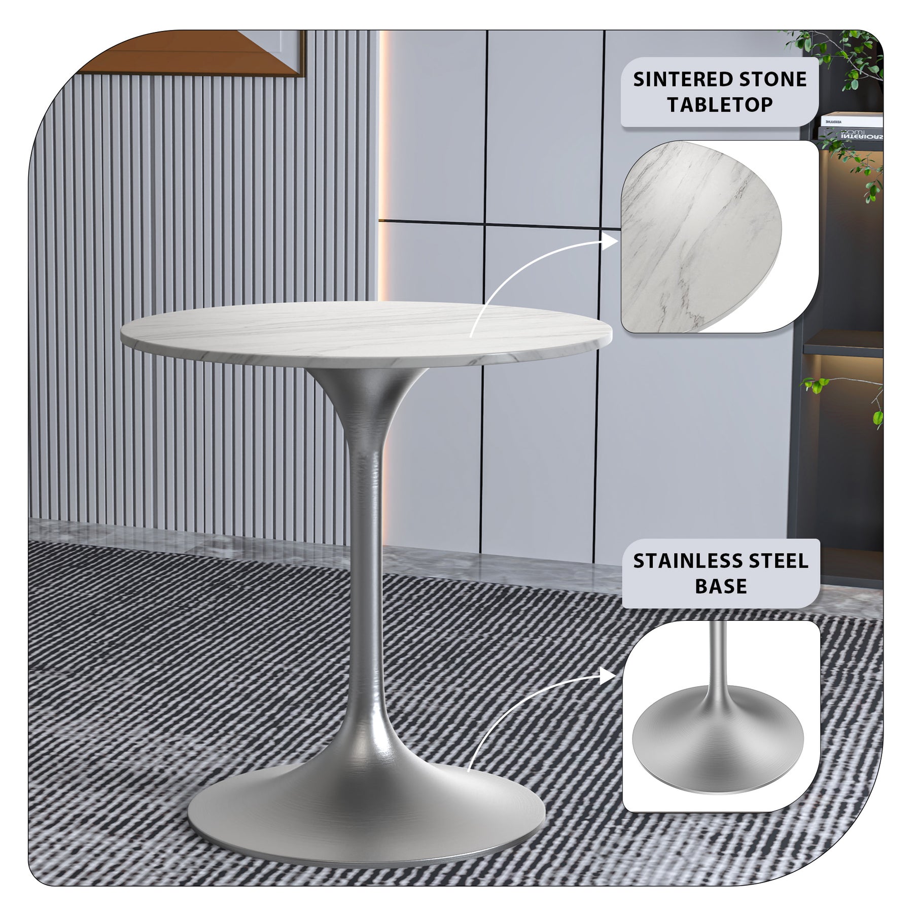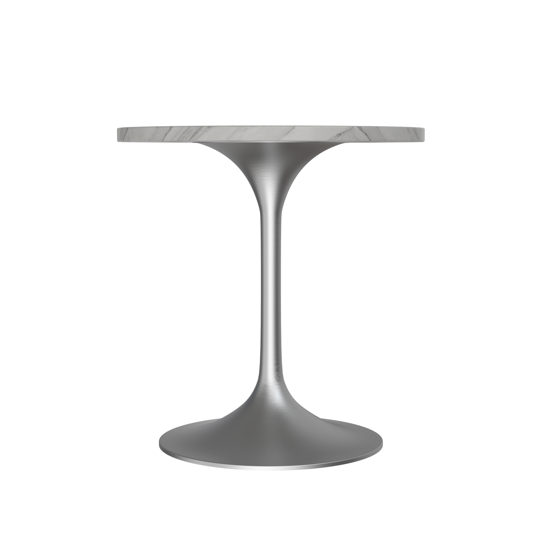 Verve Collection 27 Round Dining Table, Brushed Chrome Base with Sintered Stone White Top