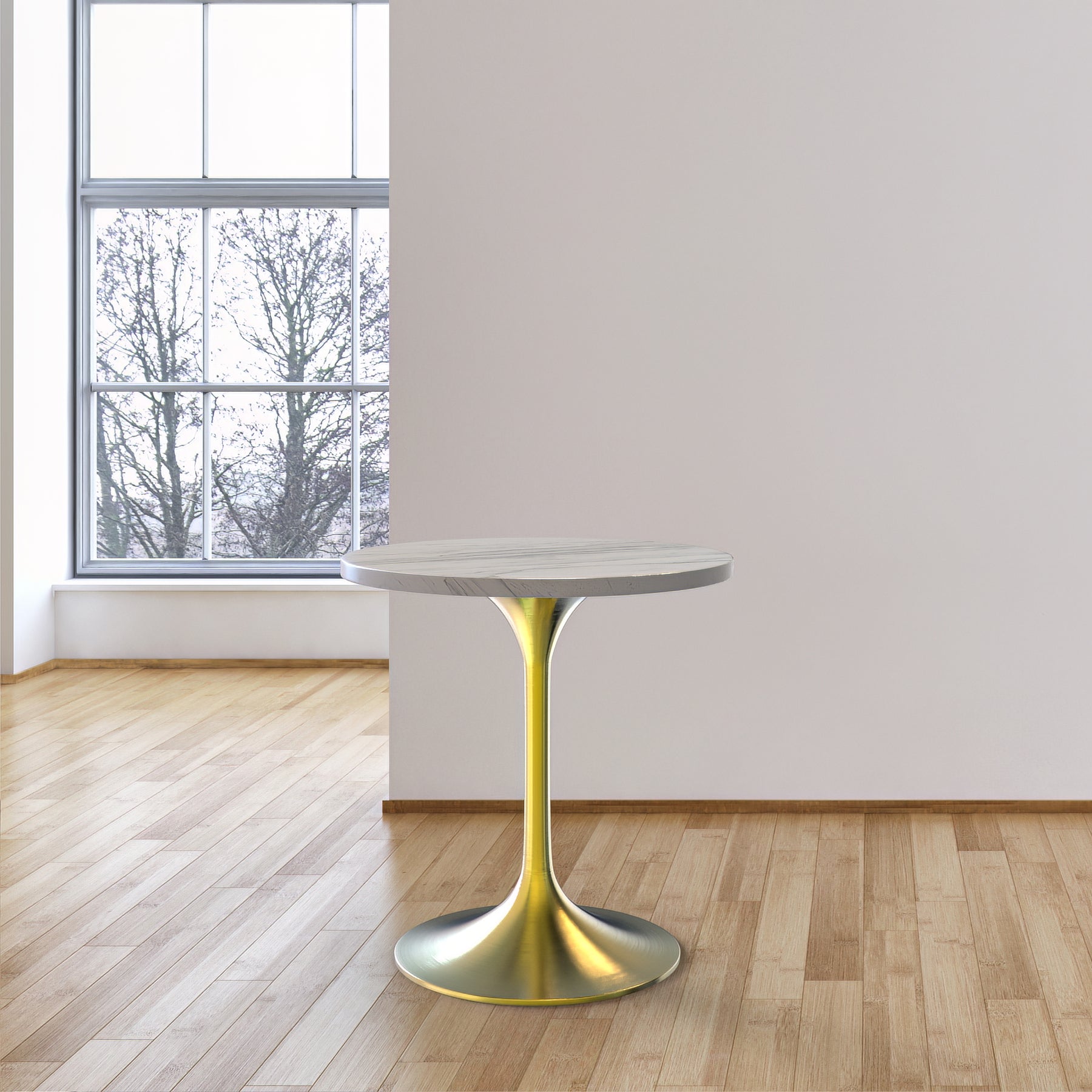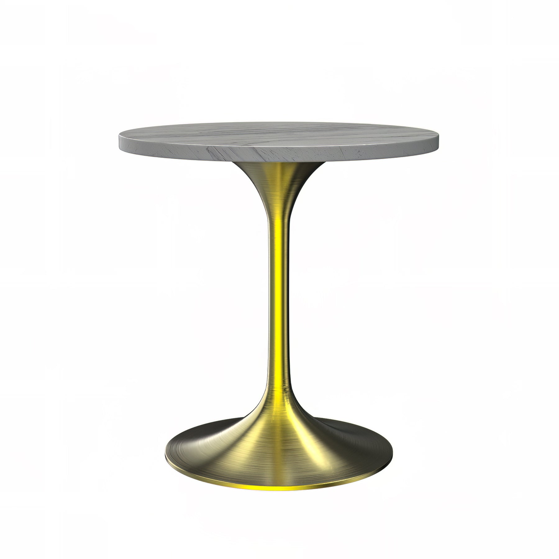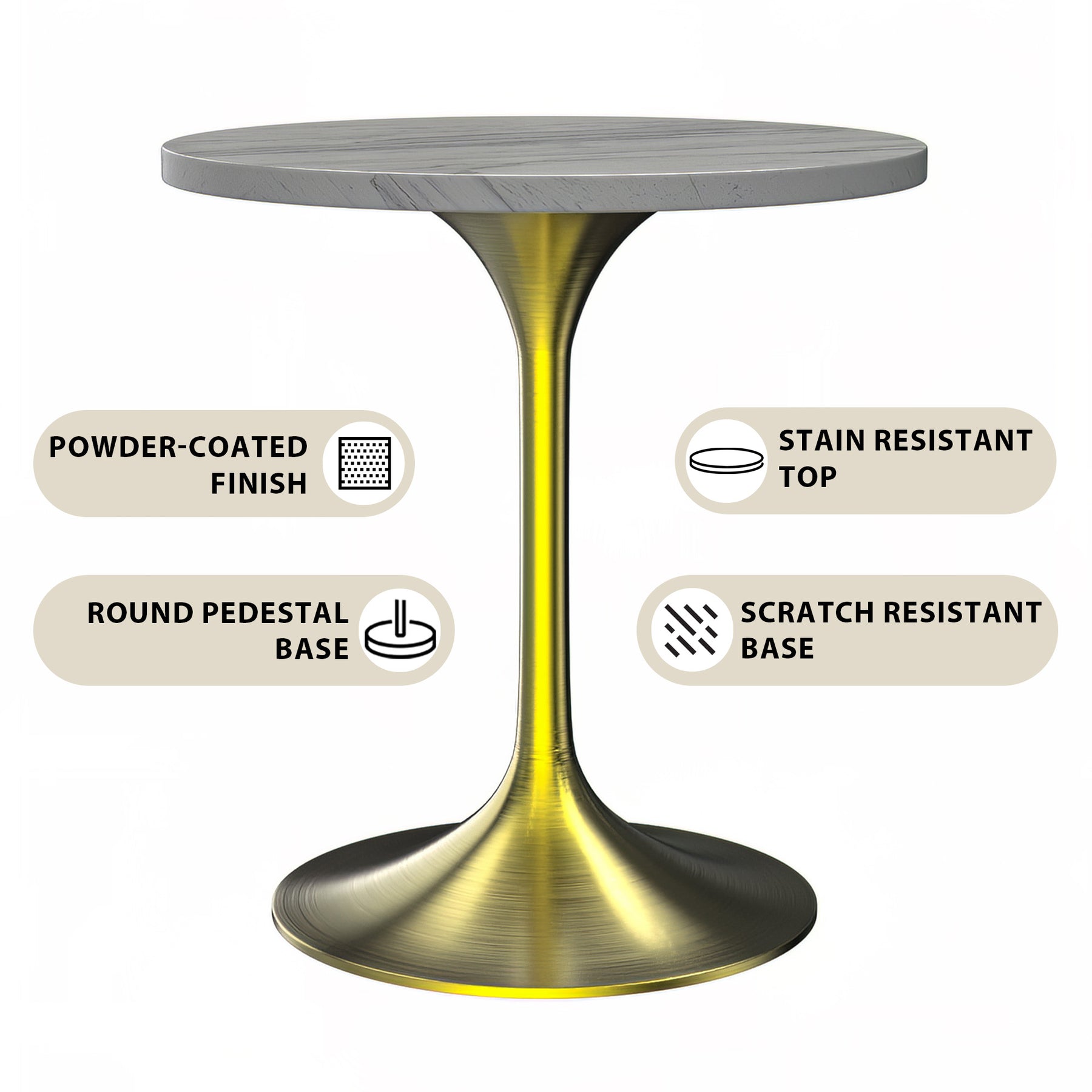 Verve Collection 27 Round Dining Table, Brushed Gold Base with Laminated White Marbleized Top