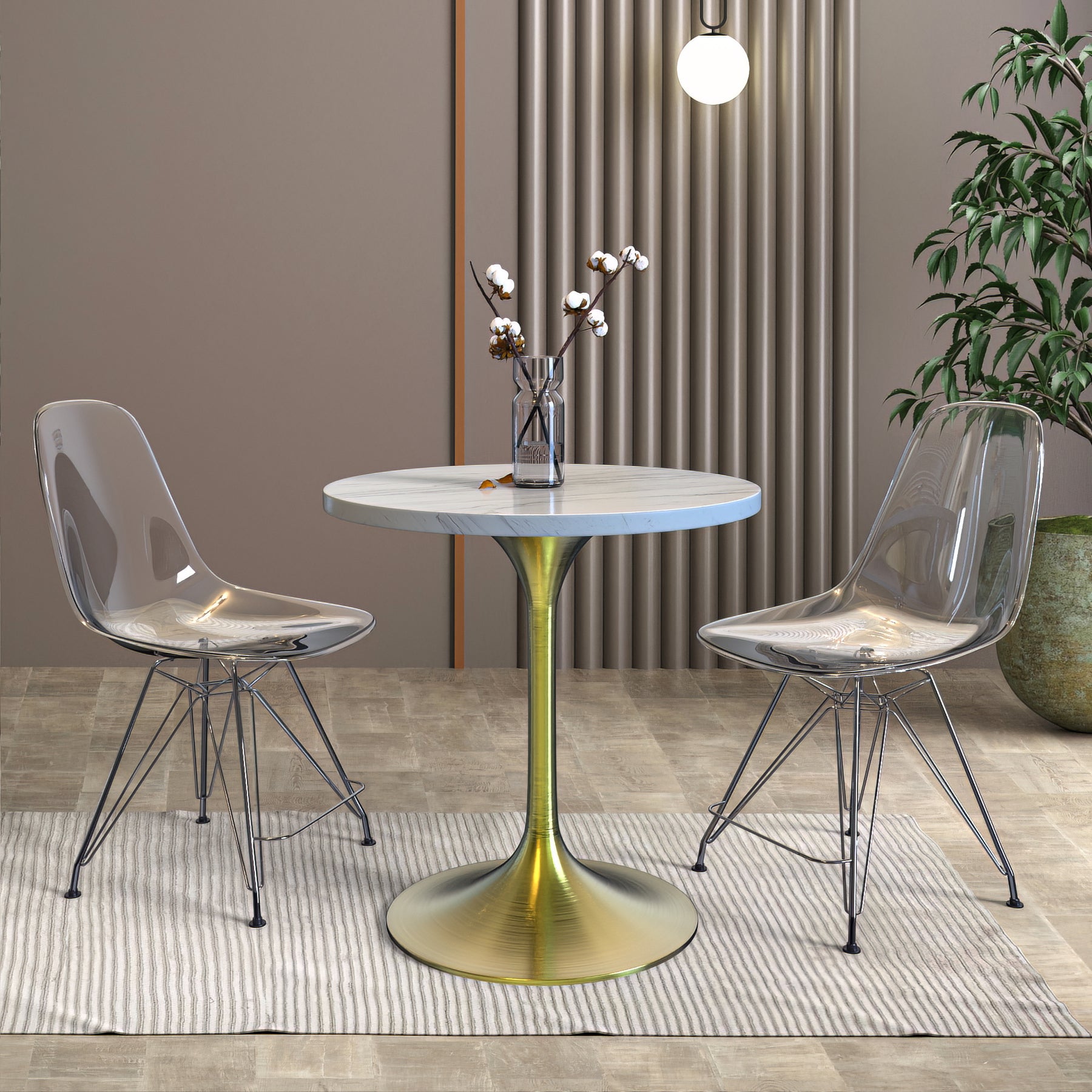 The epitome of modern elegance and practical functionality, the Verve Round Dining Table features a stainless steel pedestal base, a resin top, and boasts an easy assembly process, catering to the contemporary aesthetic and lifestyle needs of any space. At the heart of its design is the stainless steel pedestal base, a marvel of engineering and style. Stainless steel, known for its strength and durability, ensures that the table remains stable and steadfast, regardless of the daily rigors it may encounter. This material is not only robust but also offers a sleek finish that radiates modernity and adds a touch of sophistication to any room. The dining table's top is crafted from resin, a material known for its remarkable durability and elegant appearance, making it an excellent choice for a dining table surface. This durability ensures that the table can withstand the demands of daily use while maintaining its pristine condition. The top's sleek and smooth surface not only exudes luxury but also simplifies cleaning and maintenance, requiring nothing more than a wipe with a dry cloth to retain its luster. One of the features of this dining table is its ease of assembly. Designed with user convenience in mind, it can be put together quickly and effortlessly, making it an excellent choice for those who value both time and ease. This feature is particularly beneficial for busy households or commercial settings where time is of the essence. Whether gracing your dining room, kitchen, or a chic restaurant, the Verve Round Dining Table adds a touch of contemporary elegance to any setting. Immerse yourself in the seamless fusion of style, functionality, and ease of use that defines this exceptional piece of furniture.