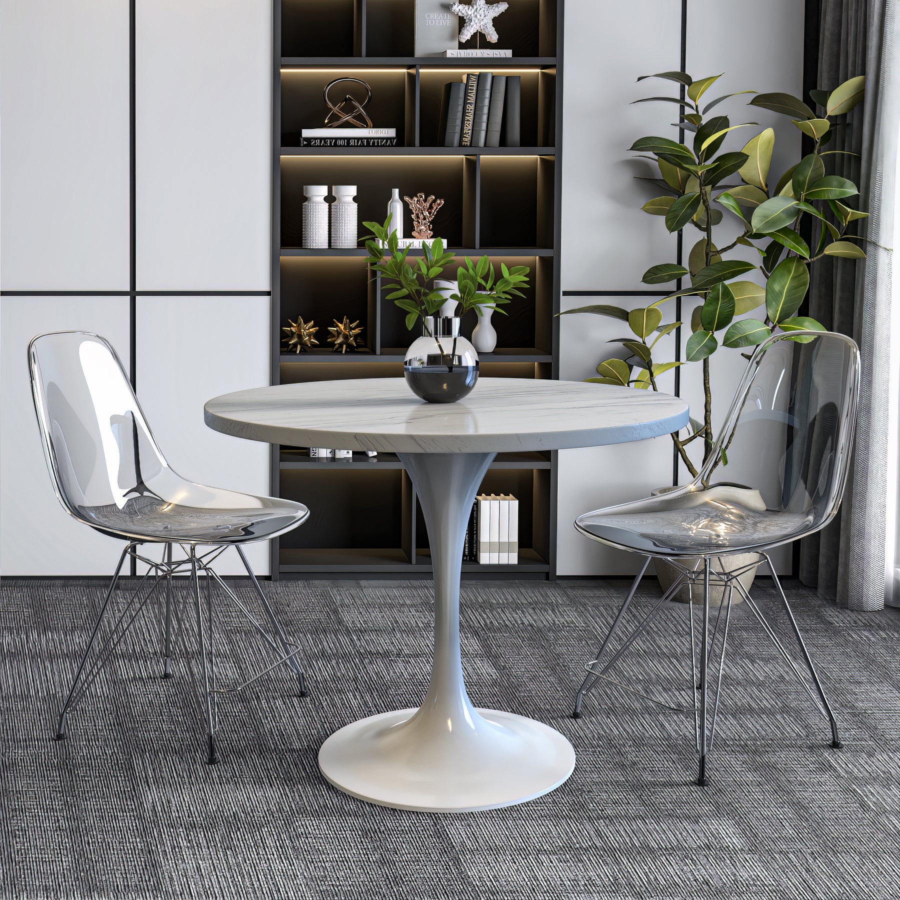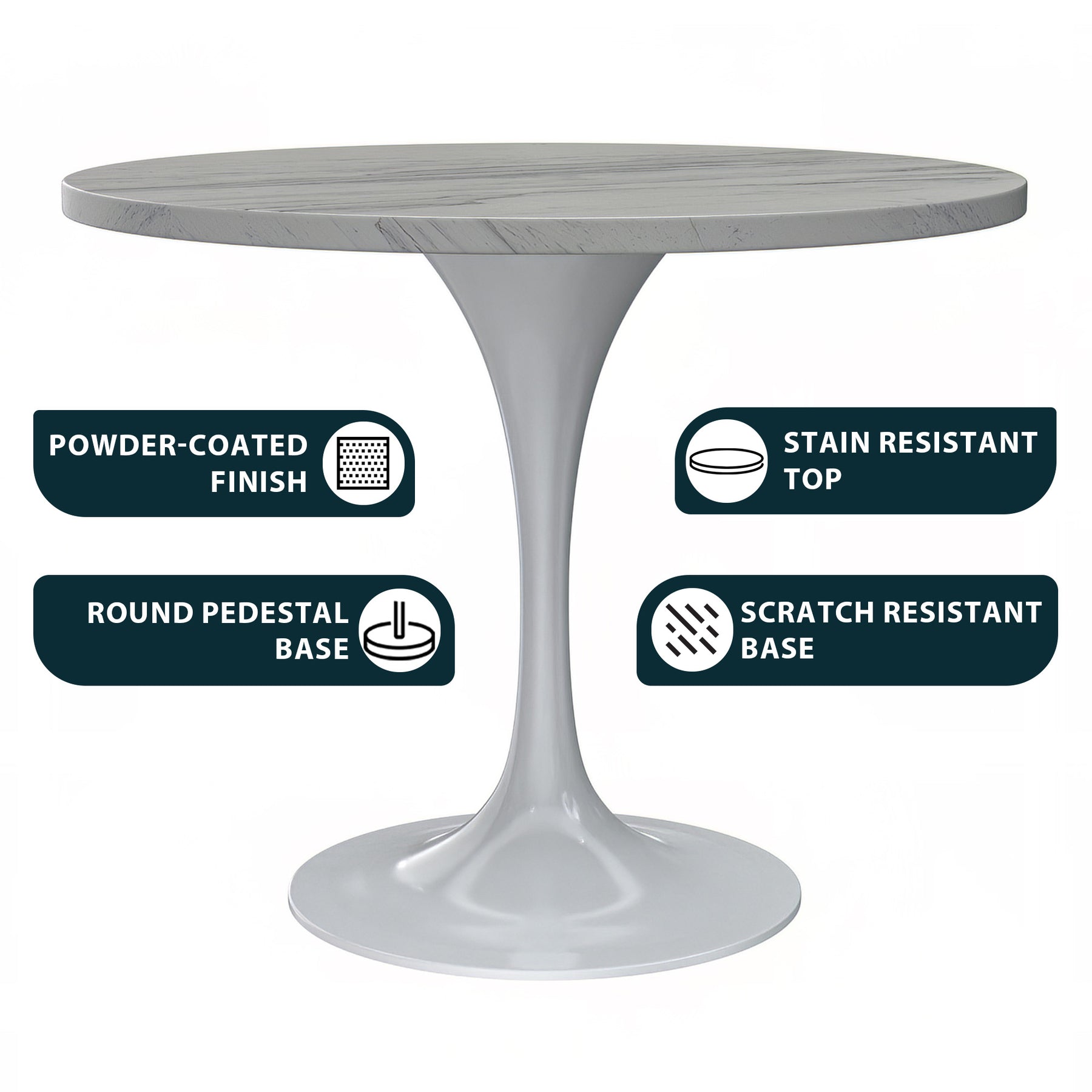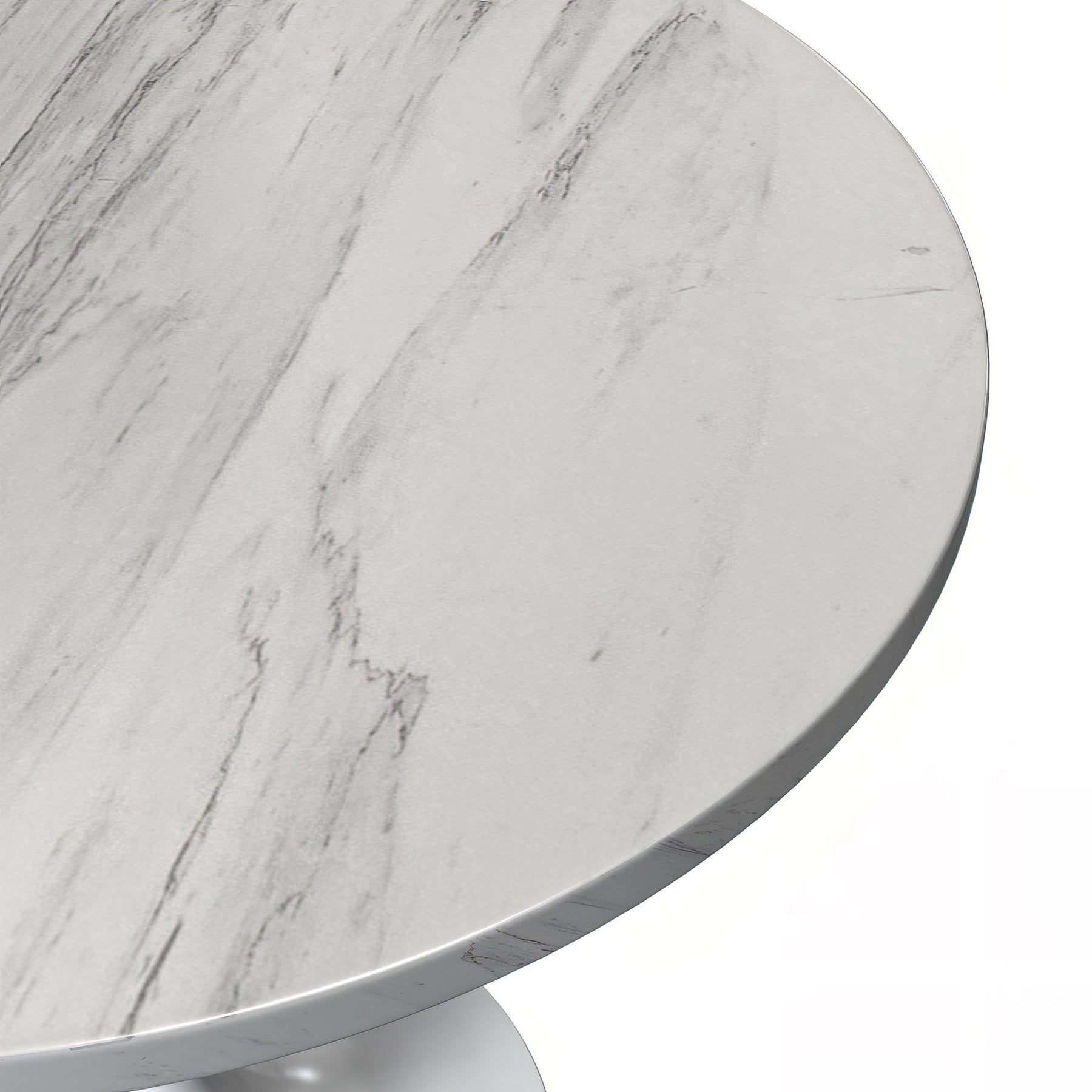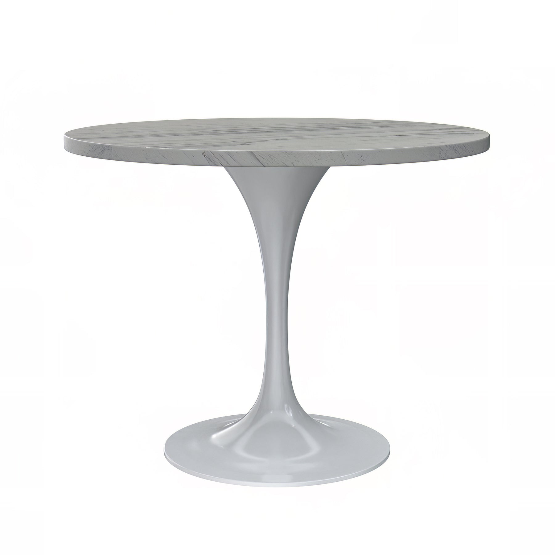 Verve Collection 36 Round Dining Table, White Base with Laminated White Marbleized Top