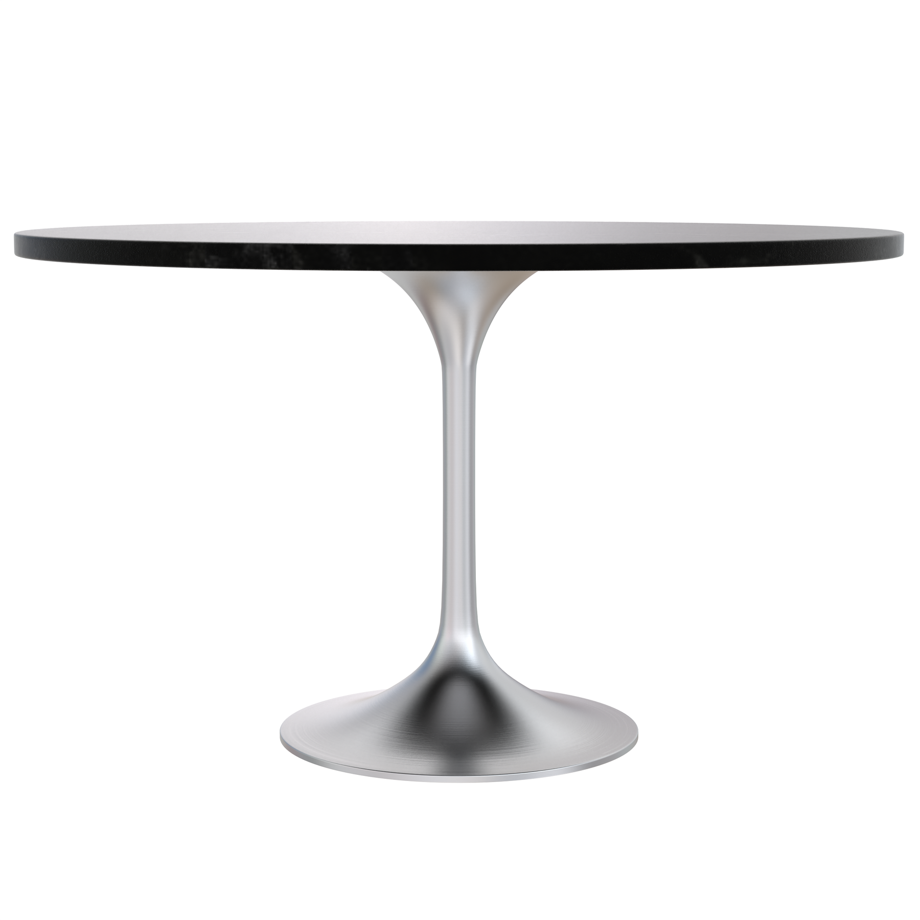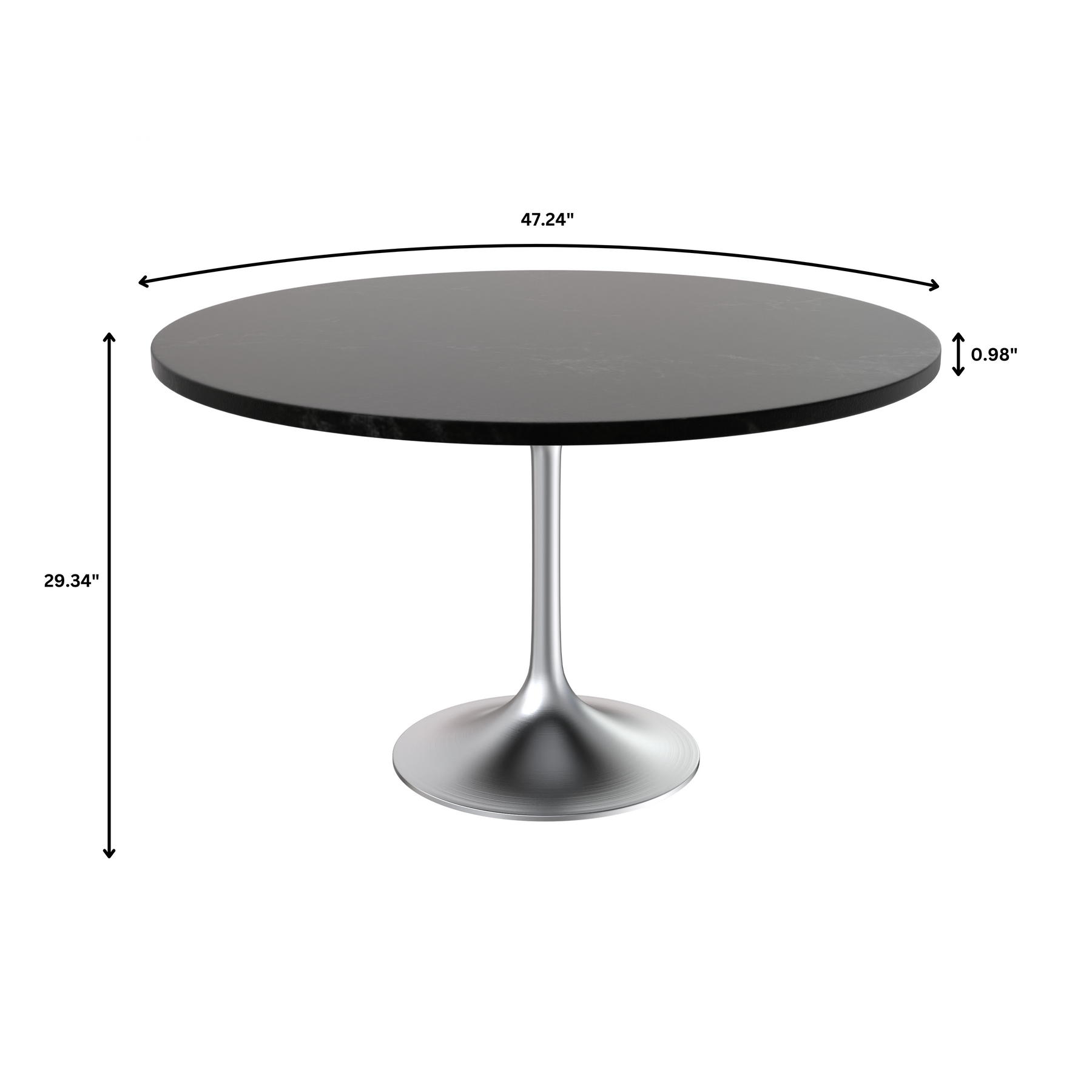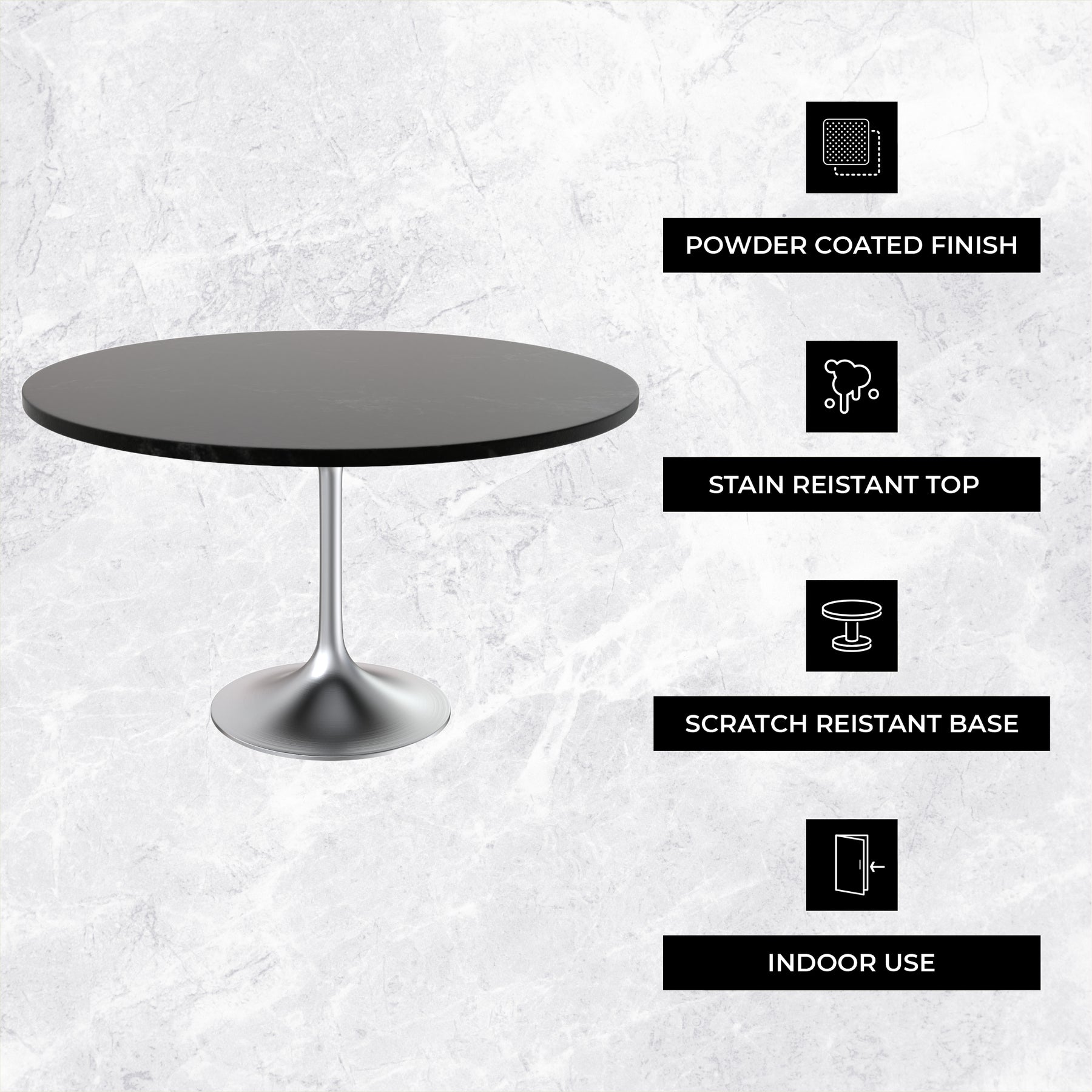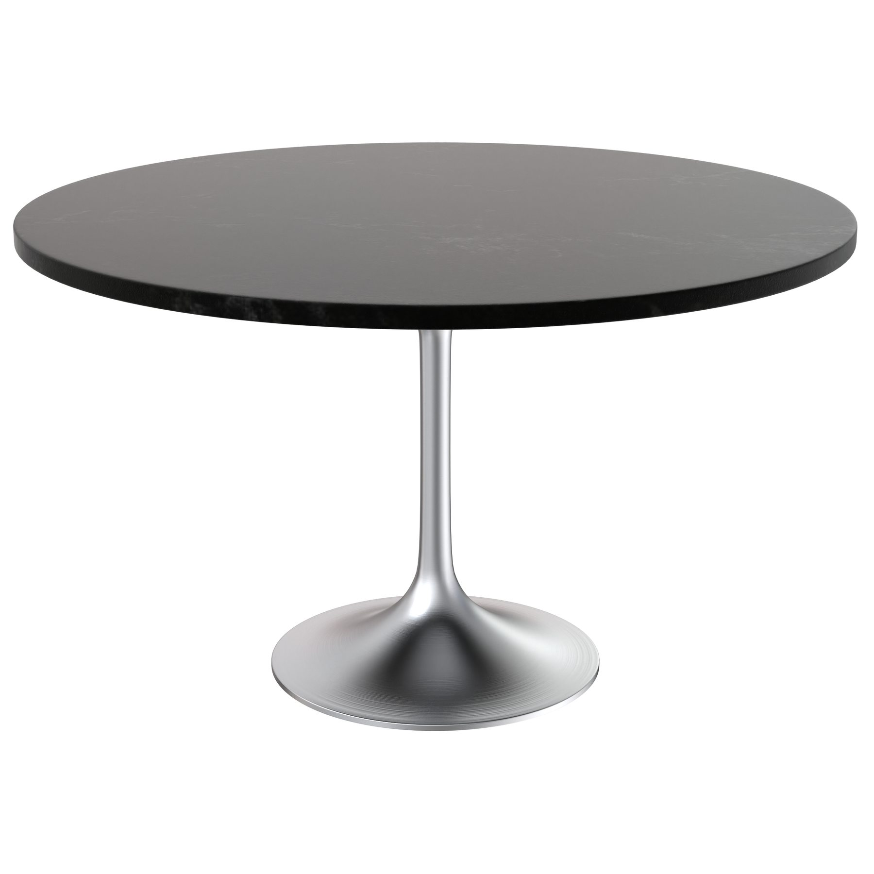 Verve Collection 48" Round Dining Table, Brushed Chrome Base with Black MDF Top