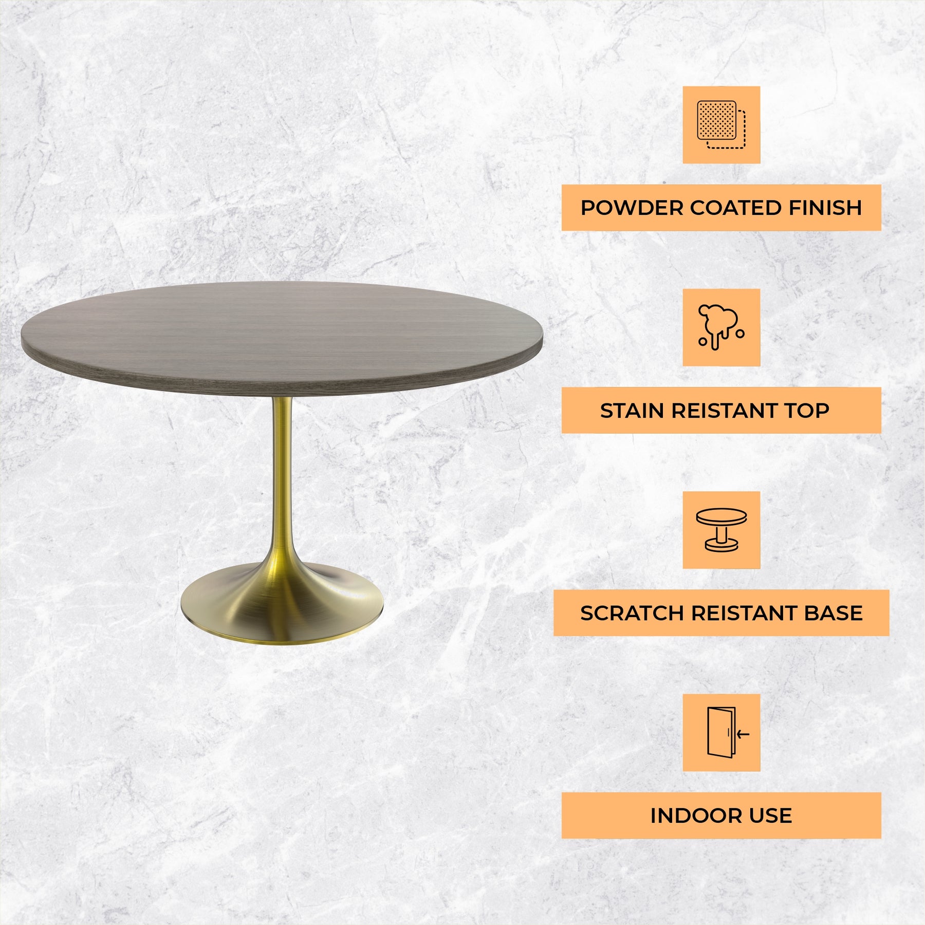 The epitome of modern elegance and practical functionality, the Verve MDF Round Dining Table features a stainless steel pedestal base, an MDF top, and boasts an easy assembly process, catering to the contemporary aesthetic and lifestyle needs of any space. Stainless steel, known for its strength and durability, ensures that the table remains stable and steadfast, regardless of the daily rigors it may encounter. One of the features of this dining table is its ease of assembly. Designed with user convenience in mind, it can be put together quickly and effortlessly, making it an excellent choice for those who value both time and ease. Whether gracing your dining room, kitchen, or a chic restaurant, the Verve Round Dining Table adds a touch of contemporary elegance to any setting.