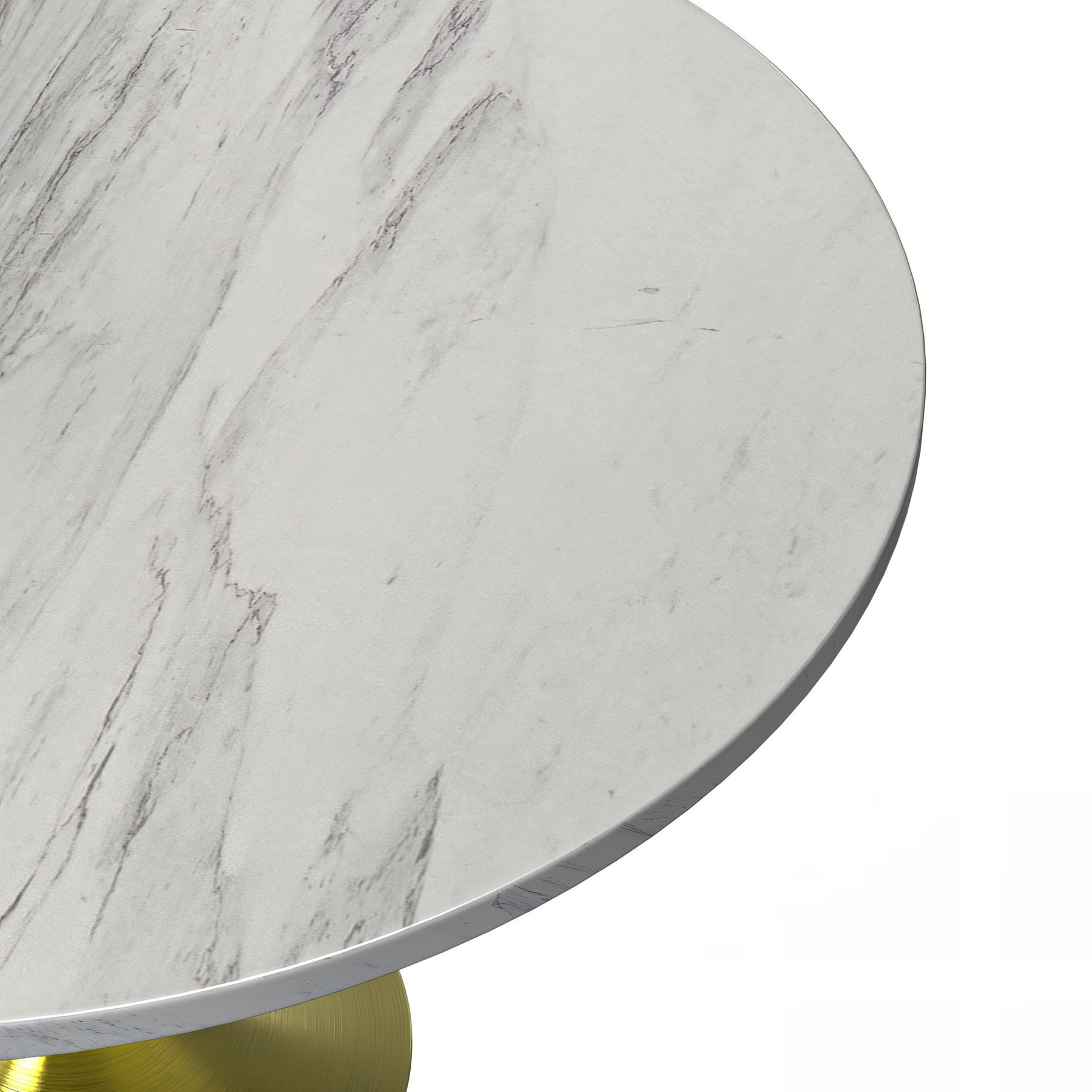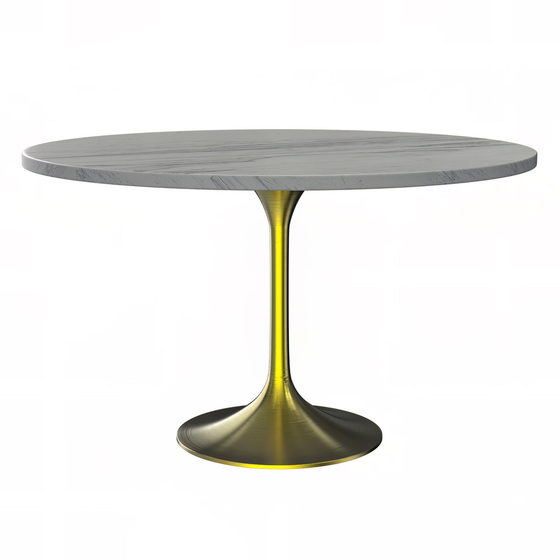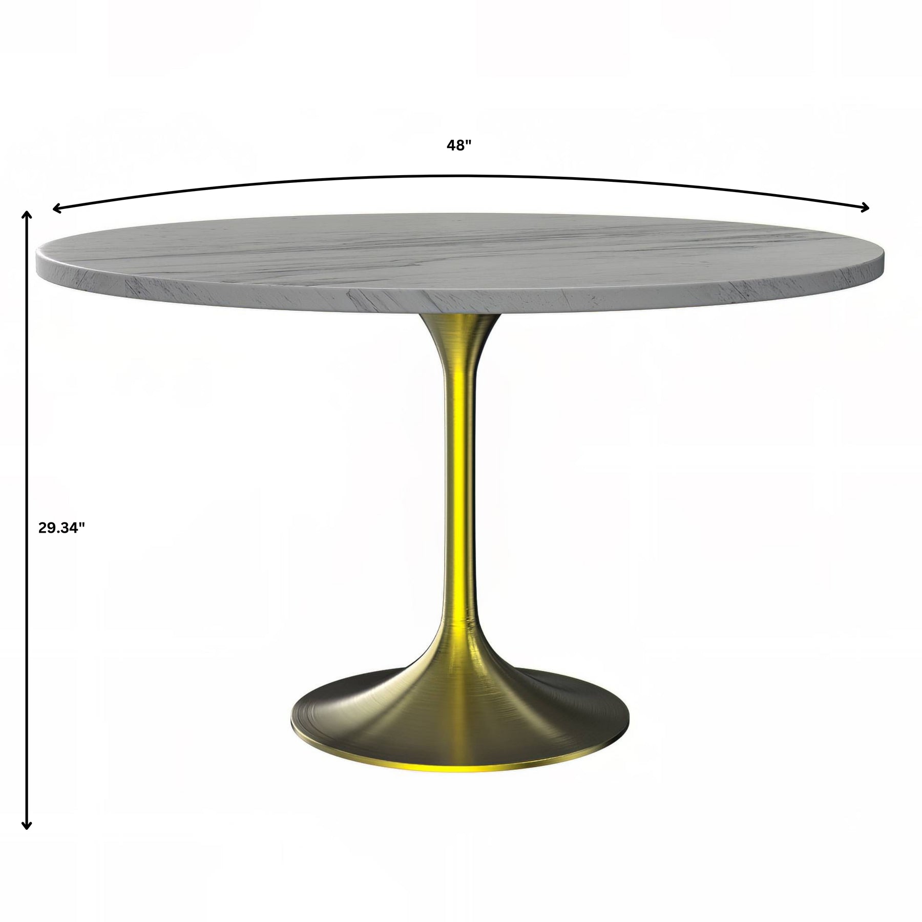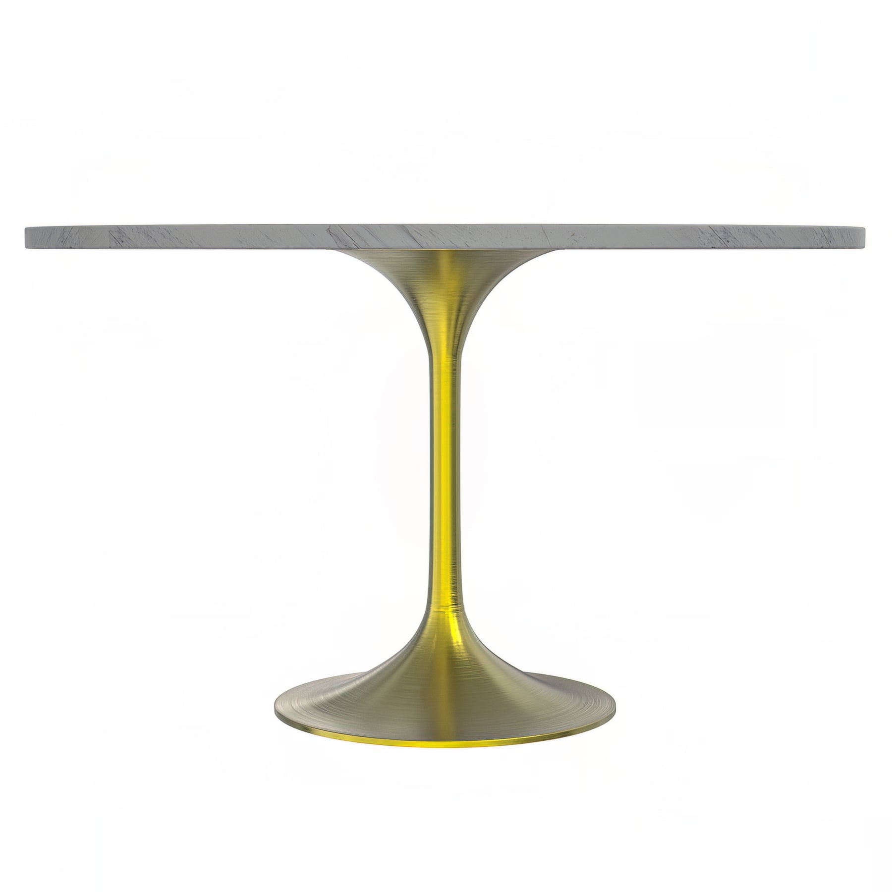 Verve Collection 48 Round Dining Table, Brushed Gold Base with Laminated White Marbleized Top