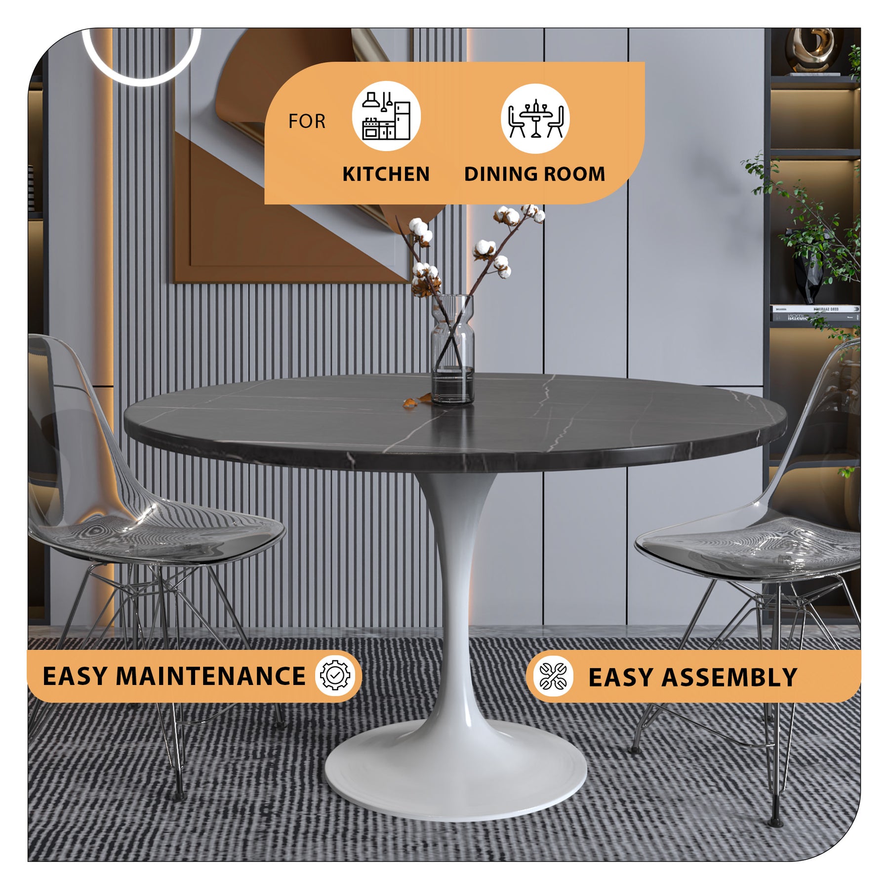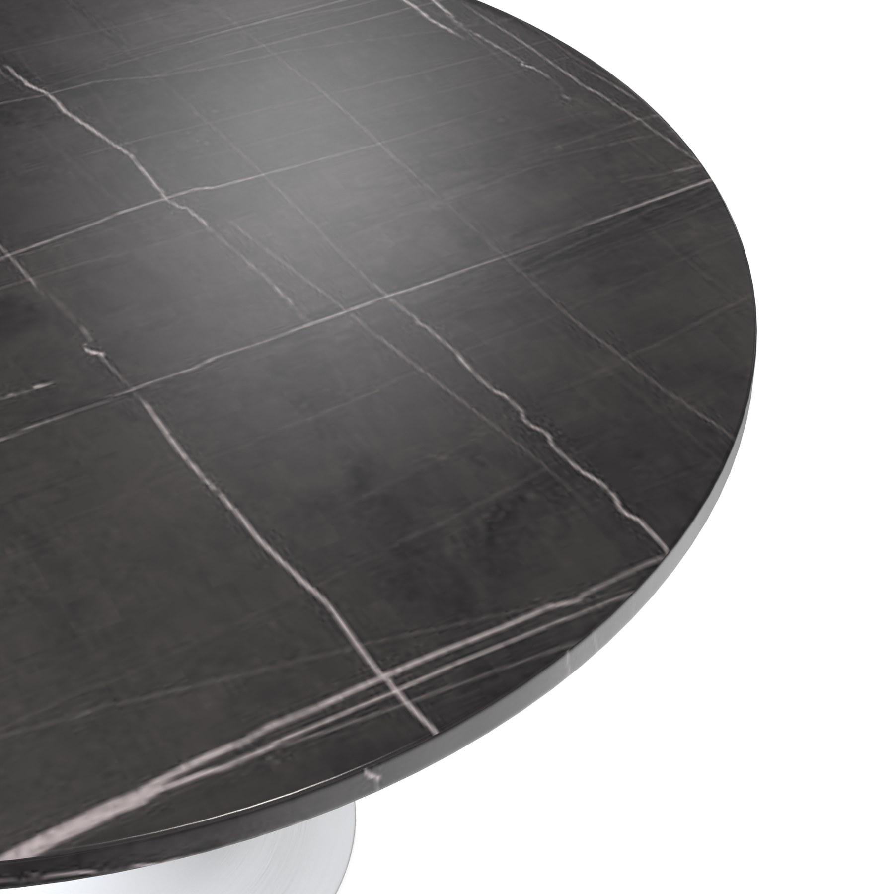 Verve Collection 48 Round Dining Table, White Base with Sintered Stone Black Top
