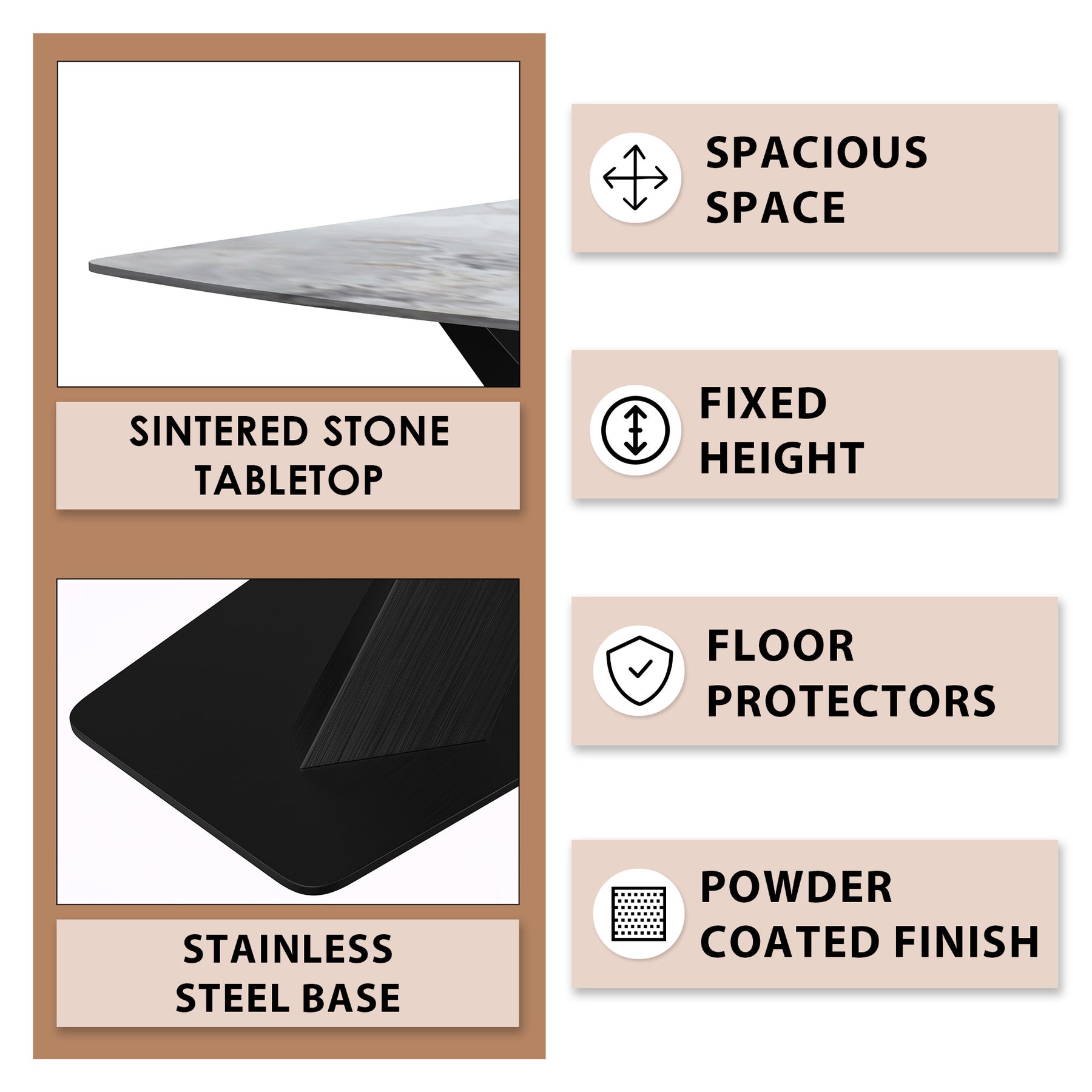 - Its stainless-steel base features a sleek brushed finish, offering a polished appearance that elevates the sophistication of your dining area. This brushed coating enhances the table's overall elegance, making it a standout piece suitable for any setting, from formal dinners to casual gatherings.