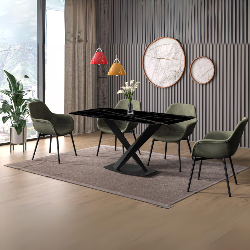 - Crafted from premium sintered stone or glass tabletops, our LeisureMod Voren modern dining table boasts advanced materials renowned for their durability and minimal upkeep requirements. The surfaces not only enhance the aesthetic allure of your dining area but also infuses a touch of luxury