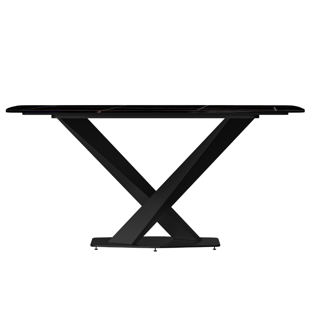 Voren Series Modern Dining Table Black Base, With 62 Black/Gold Sintered Stone Top