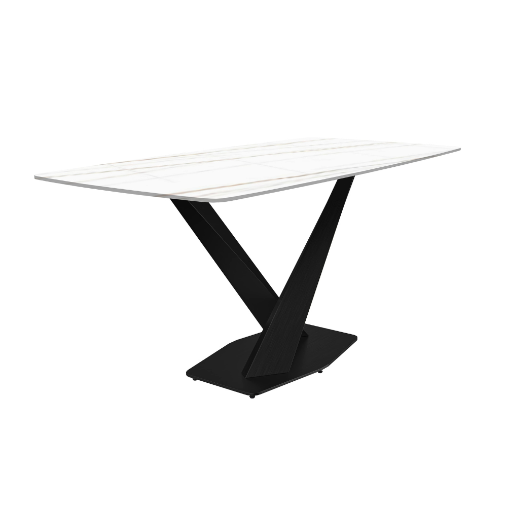 Voren Series Modern Dining Table Black Base, With 71 White/Gold Sintered Stone Top