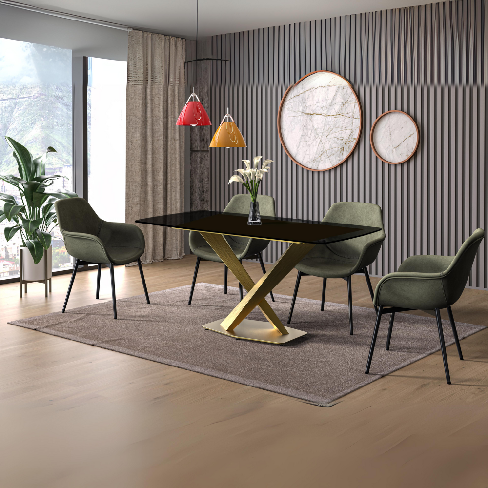 Voren Series Modern Dining Table Gold Base, With 62 Black Glass Top