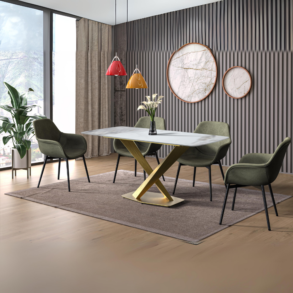 - Crafted from premium sintered stone or glass tabletops, our LeisureMod Voren modern dining table boasts advanced materials renowned for their durability and minimal upkeep requirements. The surfaces not only enhance the aesthetic allure of your dining area but also infuses a touch of luxury