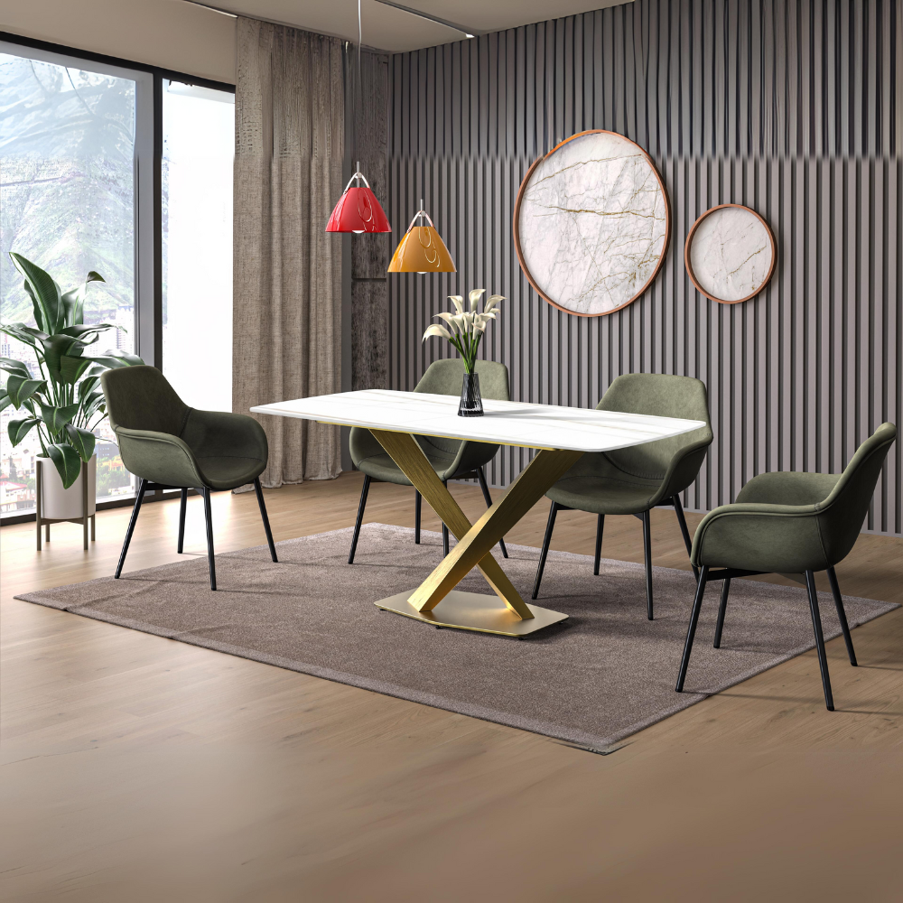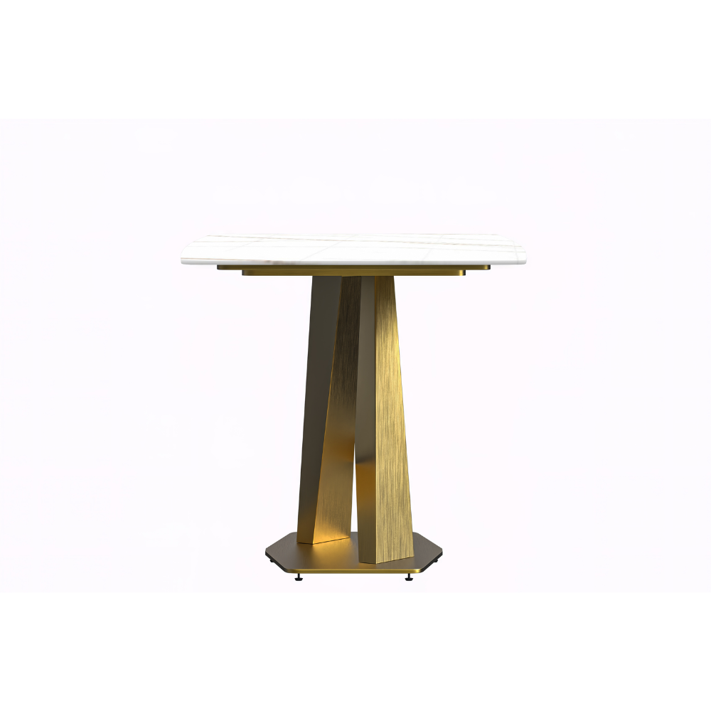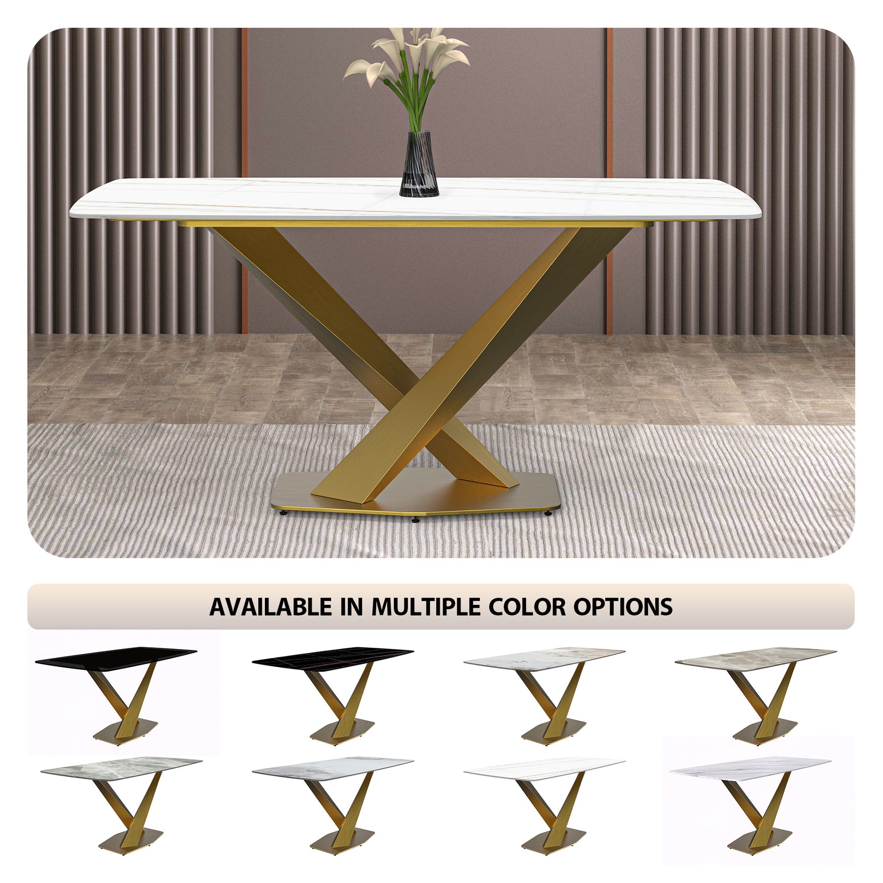 Voren Series Modern Dining Table Gold Base, With 71 White/Gold Sintered Stone Top