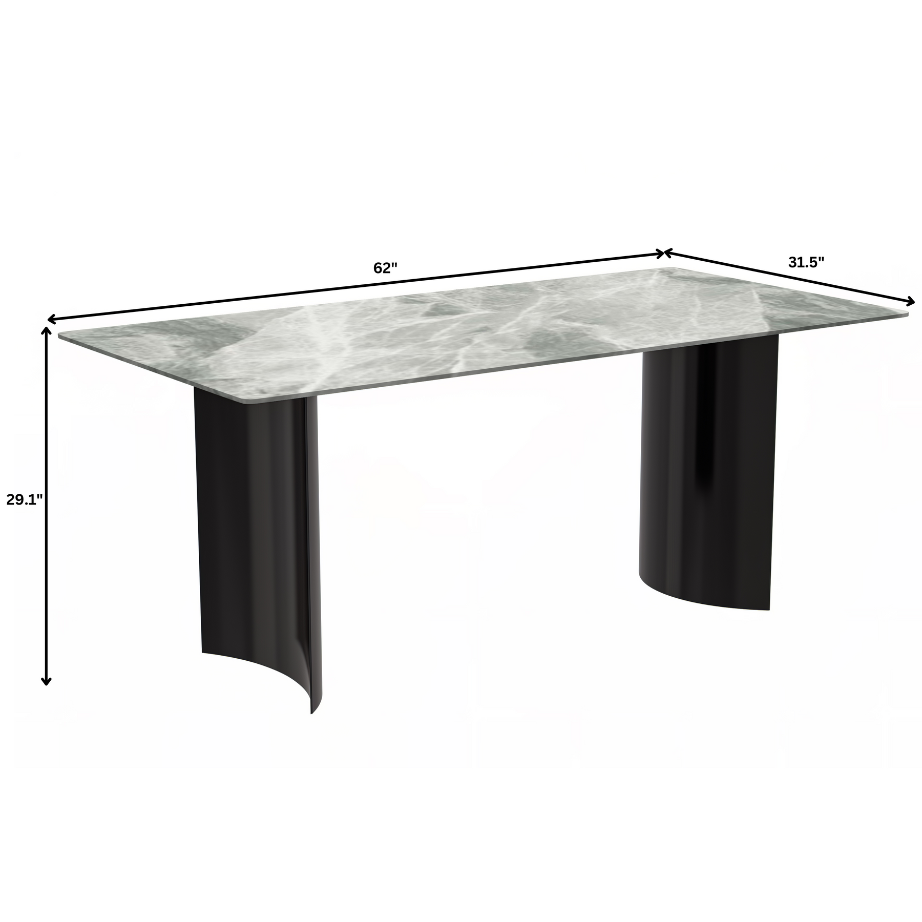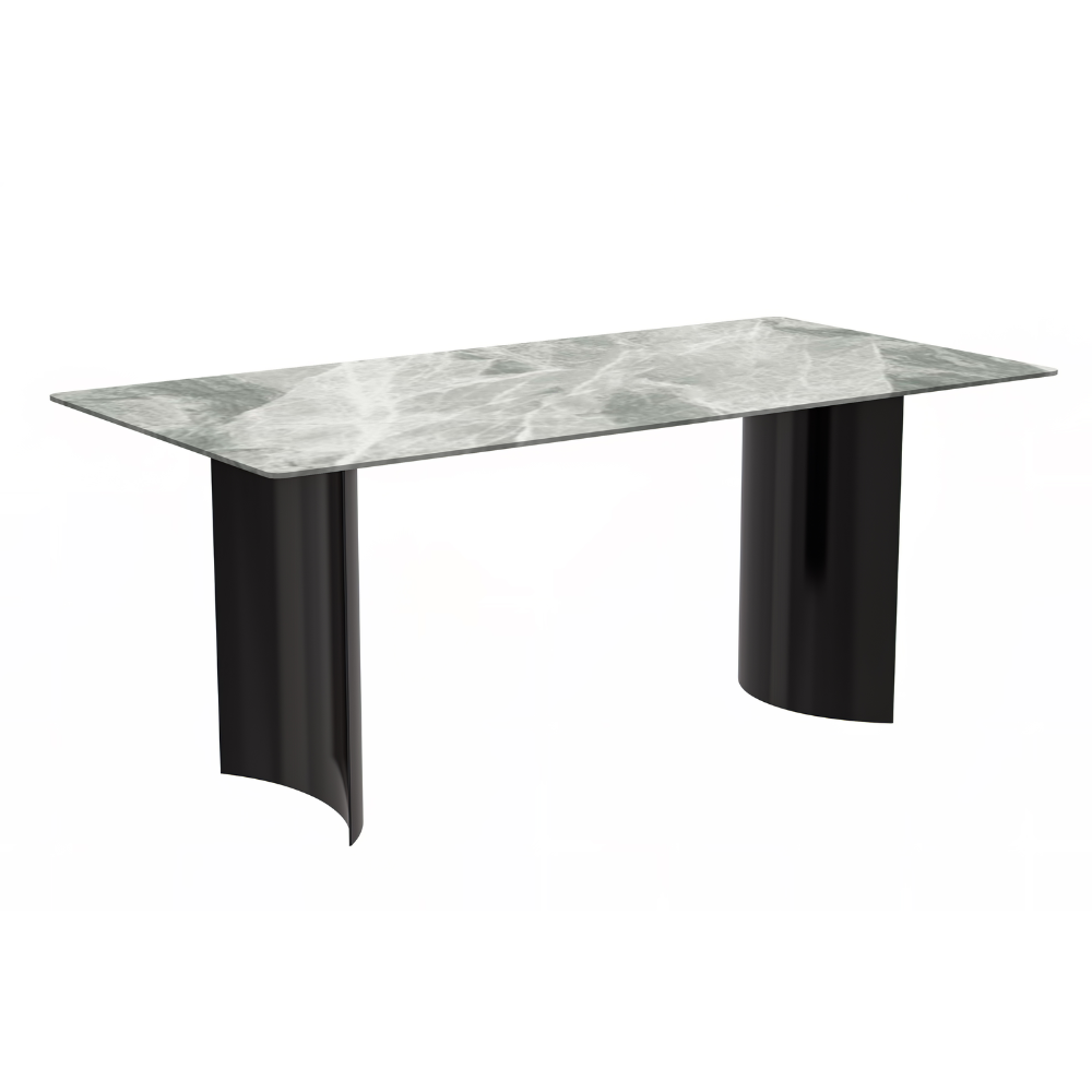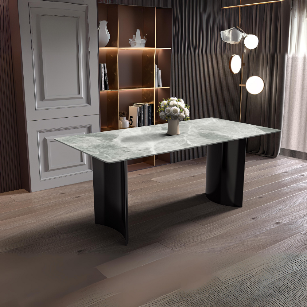 - The modern dining table boasts a sturdy stainless-steel base with an elegantly curved design, enhancing both stability and resilience while infusing a touch of contemporary sophistication into your dining area. Its sleek and stylish appearance elevates the overall aesthetic, ensuring enduring durability and timeless elegance.