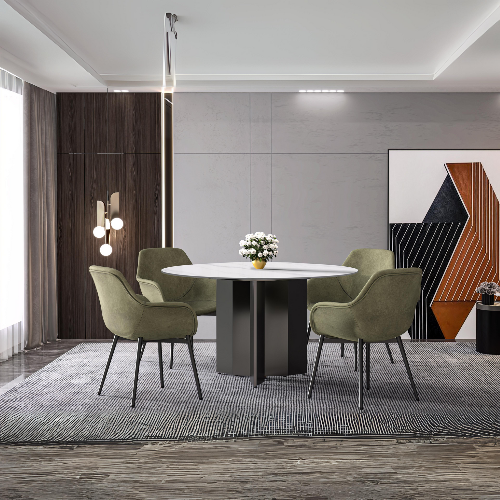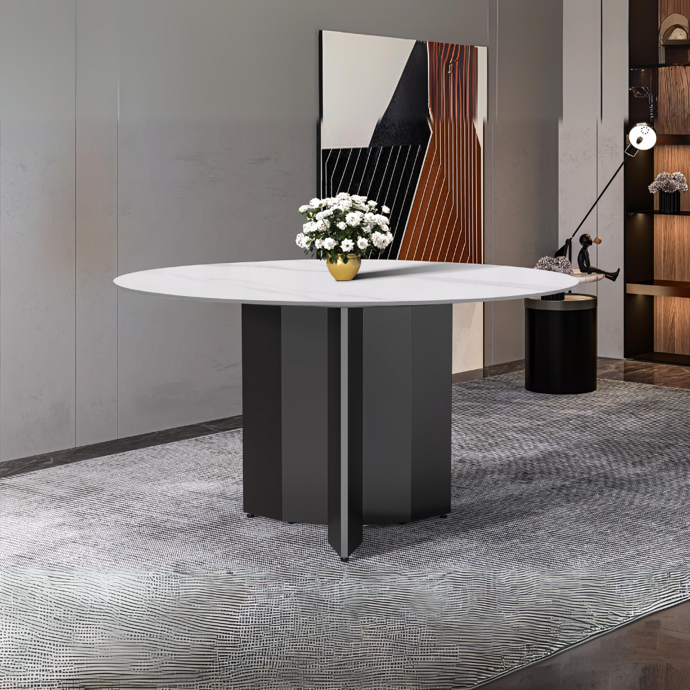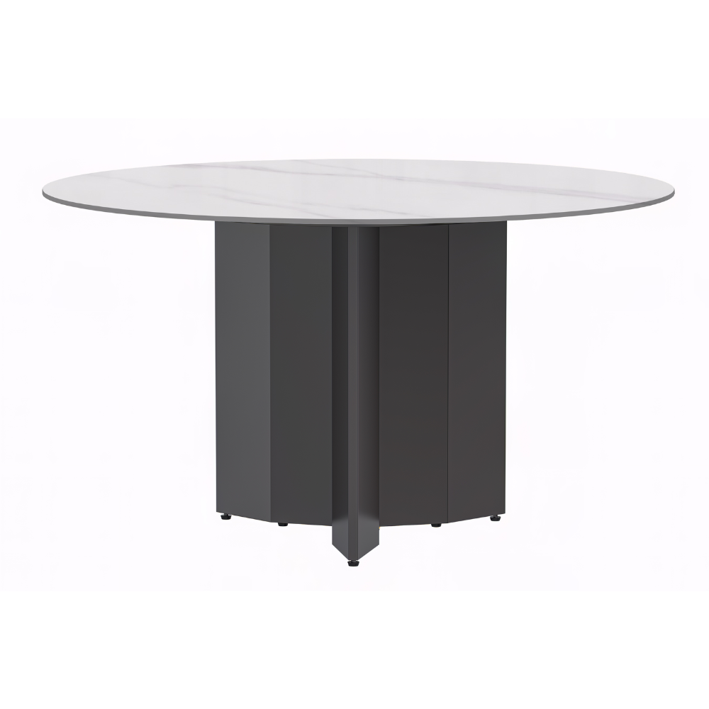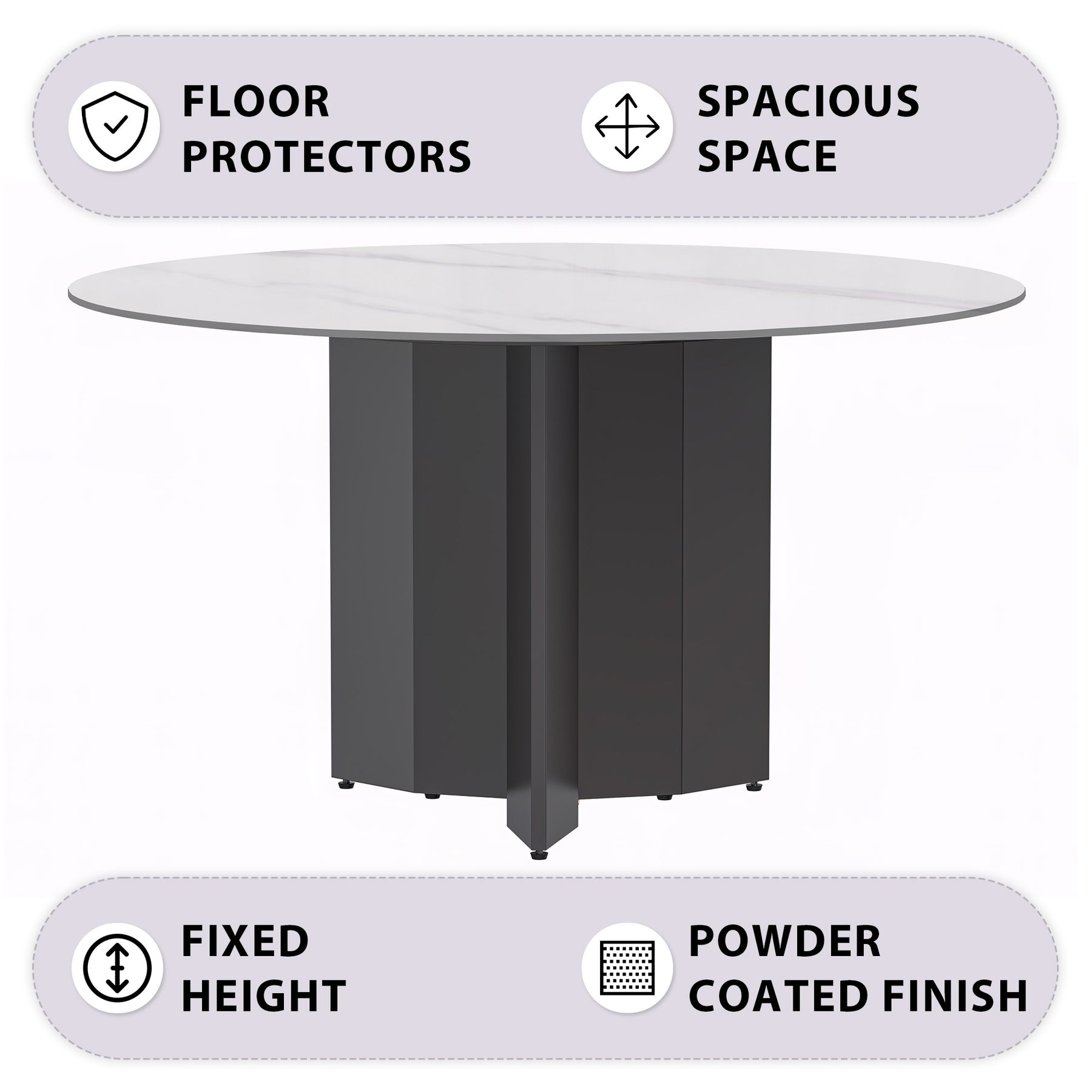 Zevro Series Round Dining Table Black Base with 60 Round White Sintered Stone Top