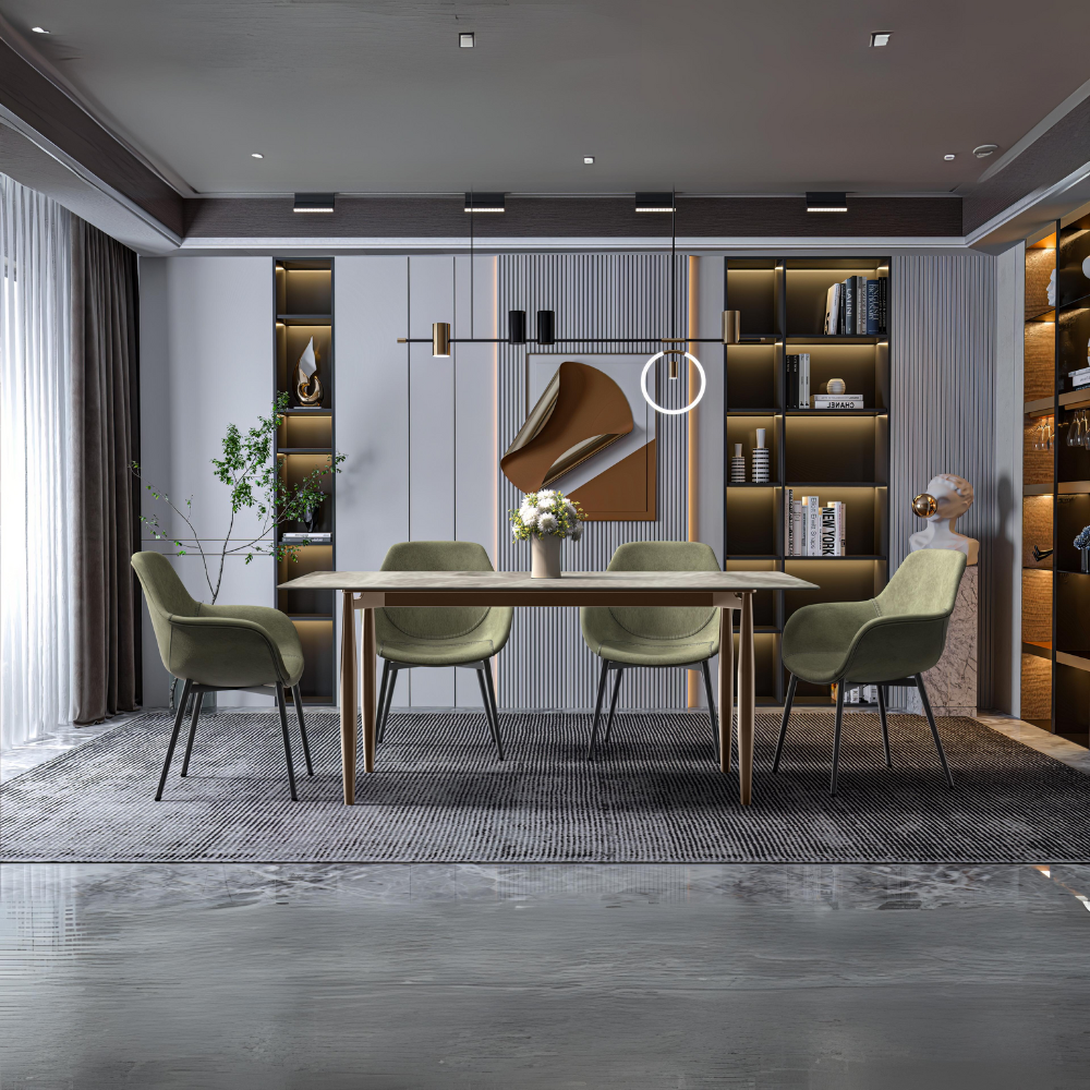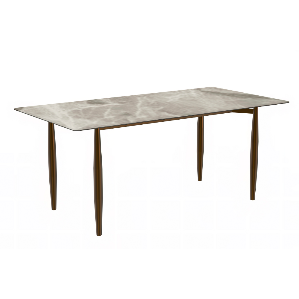 - Customize your dining setup with the modern dining table's versatile tabletop options. Opt for the sleek glass top for a contemporary appeal that's effortless to maintain or select the durable sintered stone top for a sophisticated and practical touch. Whether you favor modern allure or timeless elegance, both materials empower you to personalize the table according to your unique style and preferences.