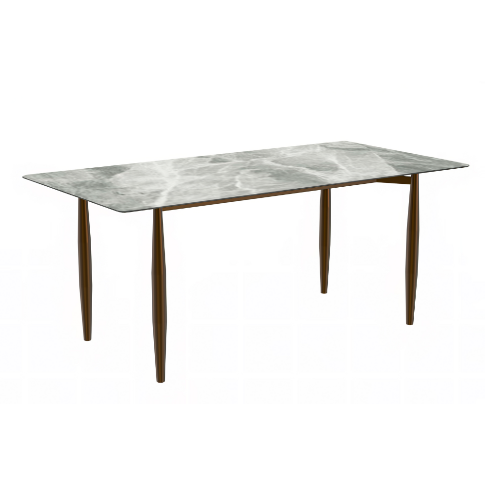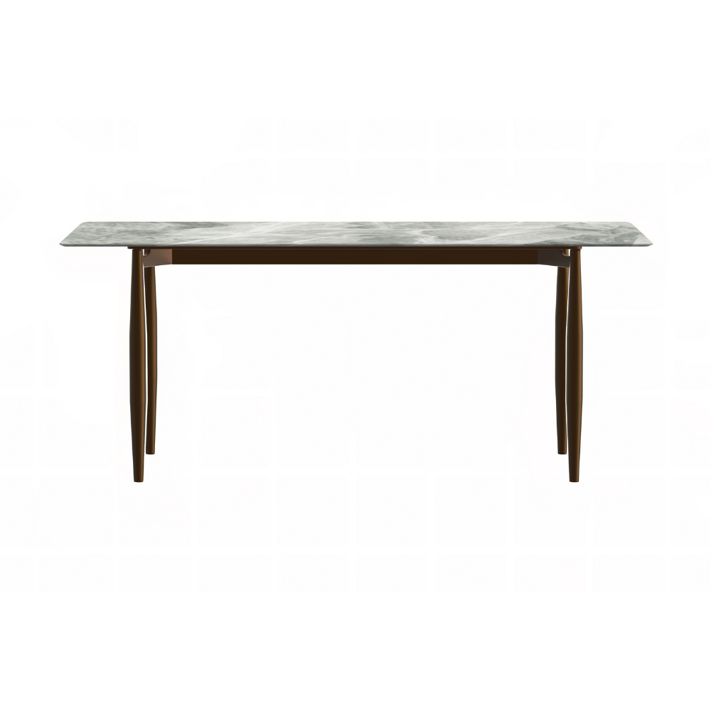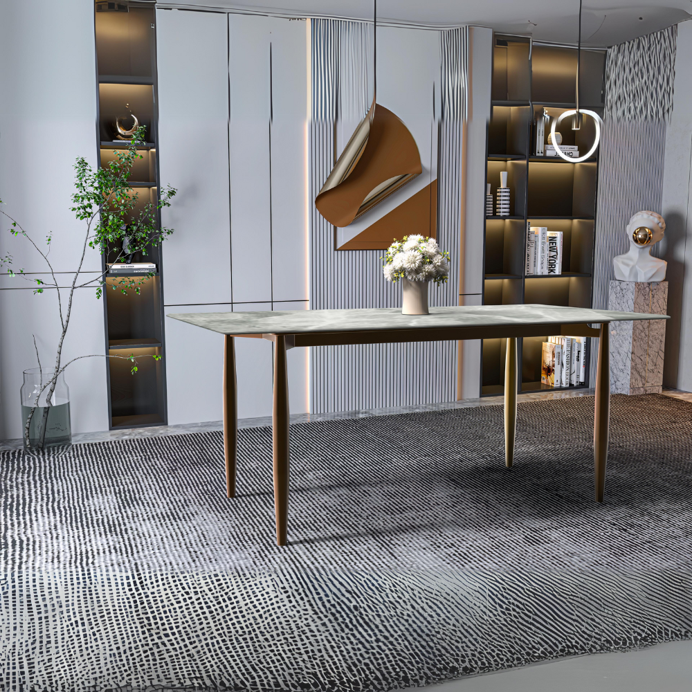 The Skyline Zinti Modern Dining Table effortlessly blends style and functionality, drawing inspiration from mid-century charm to elevate any dining space. Its sleek design exudes sophistication, while the generously sized rectangular tabletop provides ample room for dining and socializing. Supported by sturdy steel legs, stability is ensured for shared meals and cherished moments alike. Crafted from durable sintered stone or glass, the tabletop is scratch-resistant and easy to clean, enhancing your dining experience. Whether it's a casual dinner or a formal gathering, the Skyline Zinti Modern Dining Table offers both comfort and elegance for every occasion.