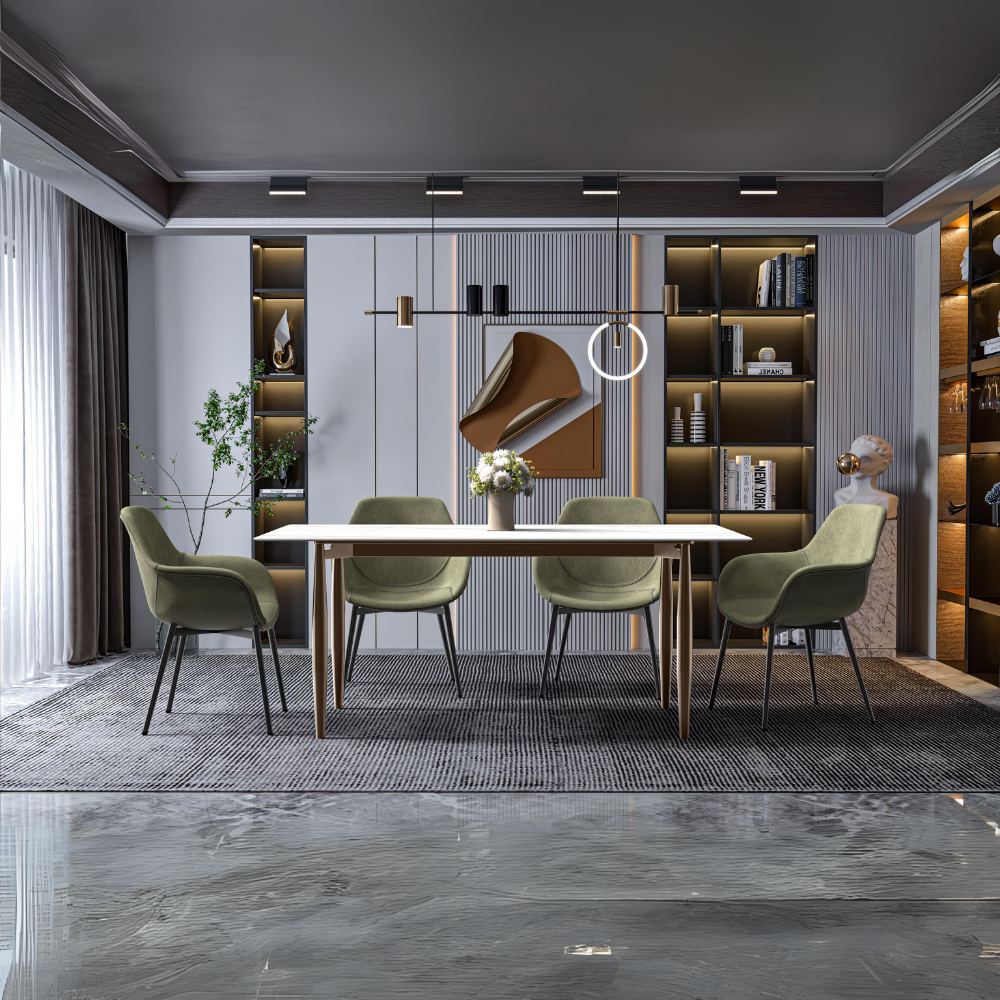 - Customize your dining setup with the modern dining table's versatile tabletop options. Opt for the sleek glass top for a contemporary appeal that's effortless to maintain or select the durable sintered stone top for a sophisticated and practical touch. Whether you favor modern allure or timeless elegance, both materials empower you to personalize the table according to your unique style and preferences.