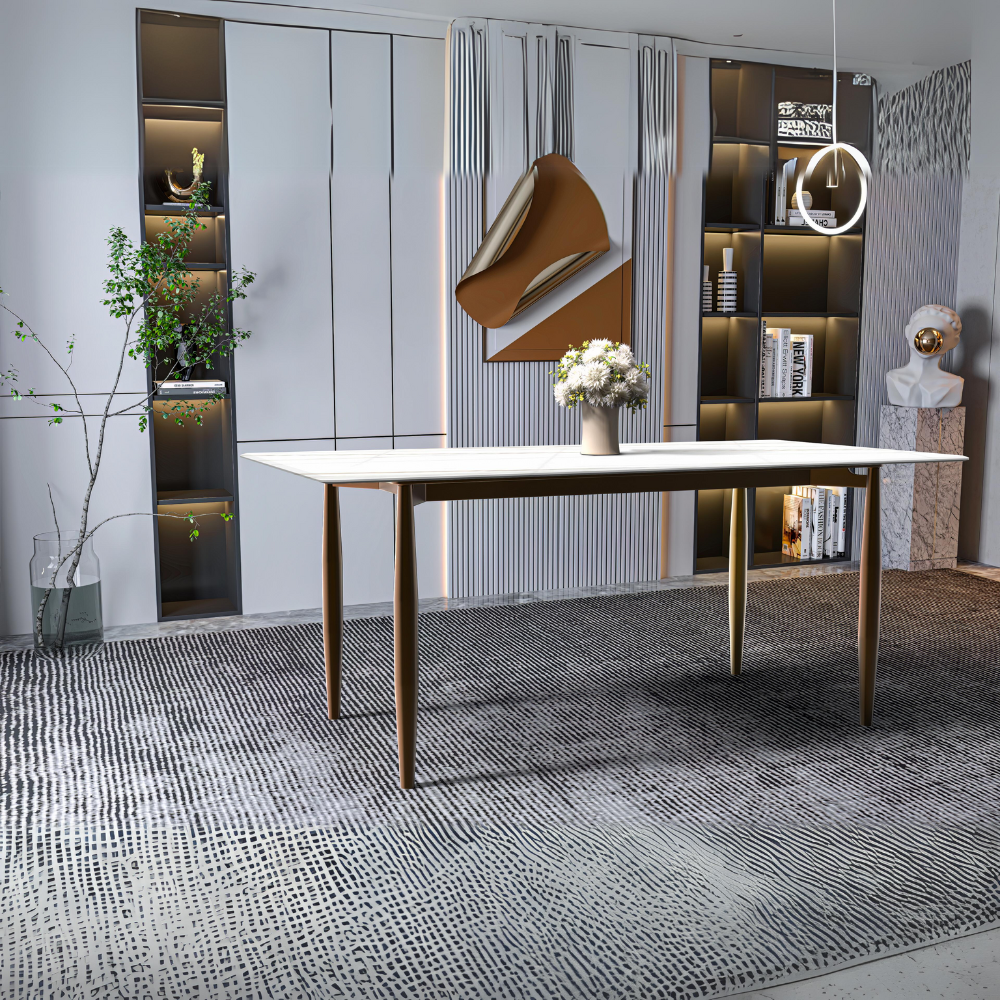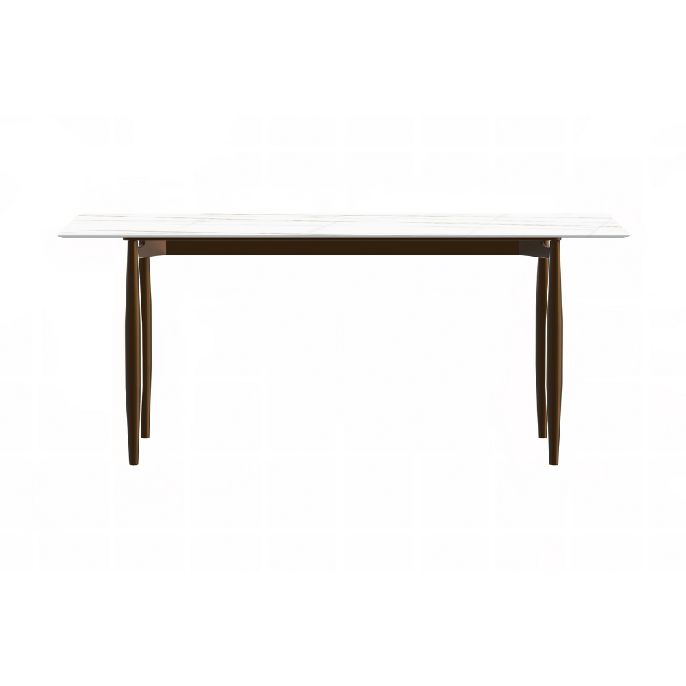 Zinti Series Modern Dining Table Bronze Base, With 55" White/Gold Sintered Stone Top