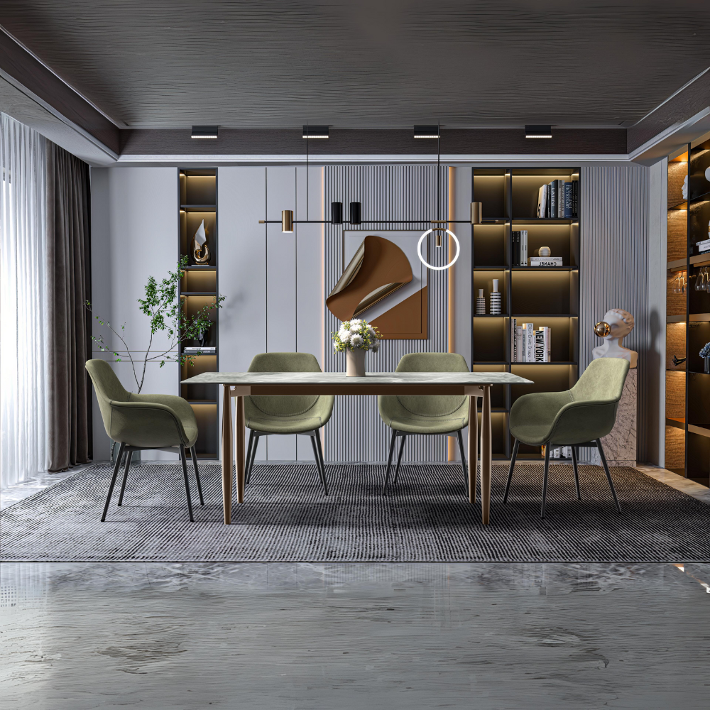 - Customize your dining setup with the modern dining table's versatile tabletop options. Opt for the sleek glass top for a contemporary appeal that's effortless to maintain or select the durable sintered stone top for a sophisticated and practical touch. Whether you favor modern allure or timeless elegance, both materials empower you to personalize the table according to your unique style and preferences.