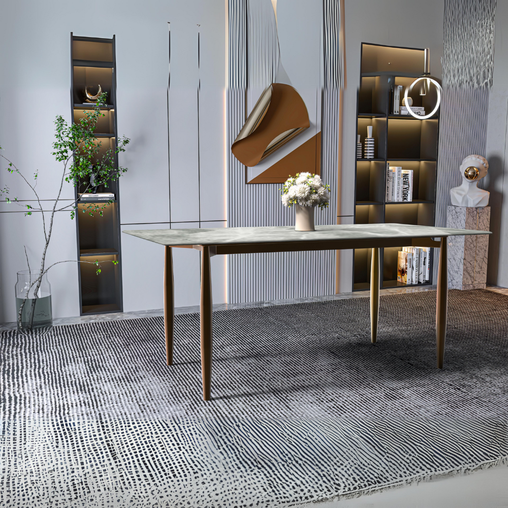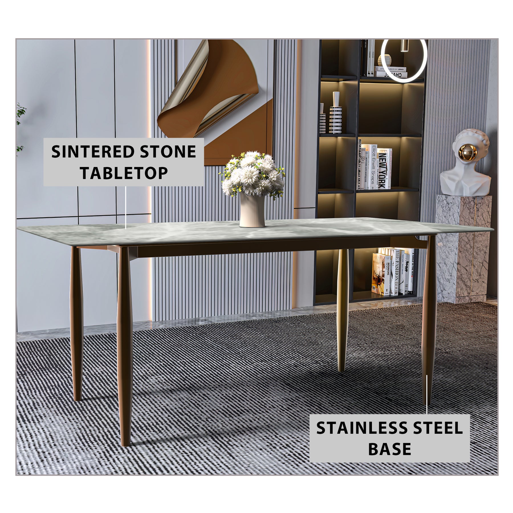 Zinti Series Modern Dining Table Bronze Base, With 62" Light Grey Sintered Stone Top