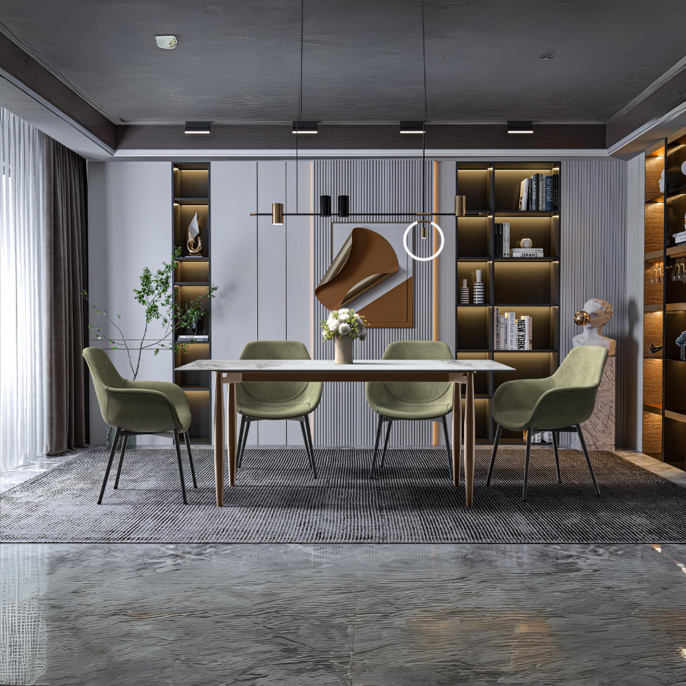 - Customize your dining setup with the modern dining table's versatile tabletop options. Opt for the sleek glass top for a contemporary appeal that's effortless to maintain or select the durable sintered stone top for a sophisticated and practical touch. Whether you favor modern allure or timeless elegance, both materials empower you to personalize the table according to your unique style and preferences.