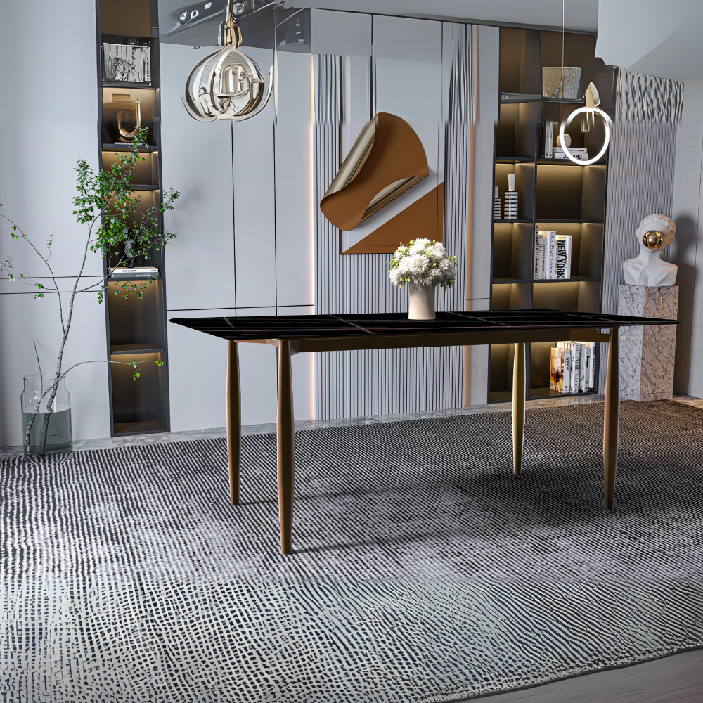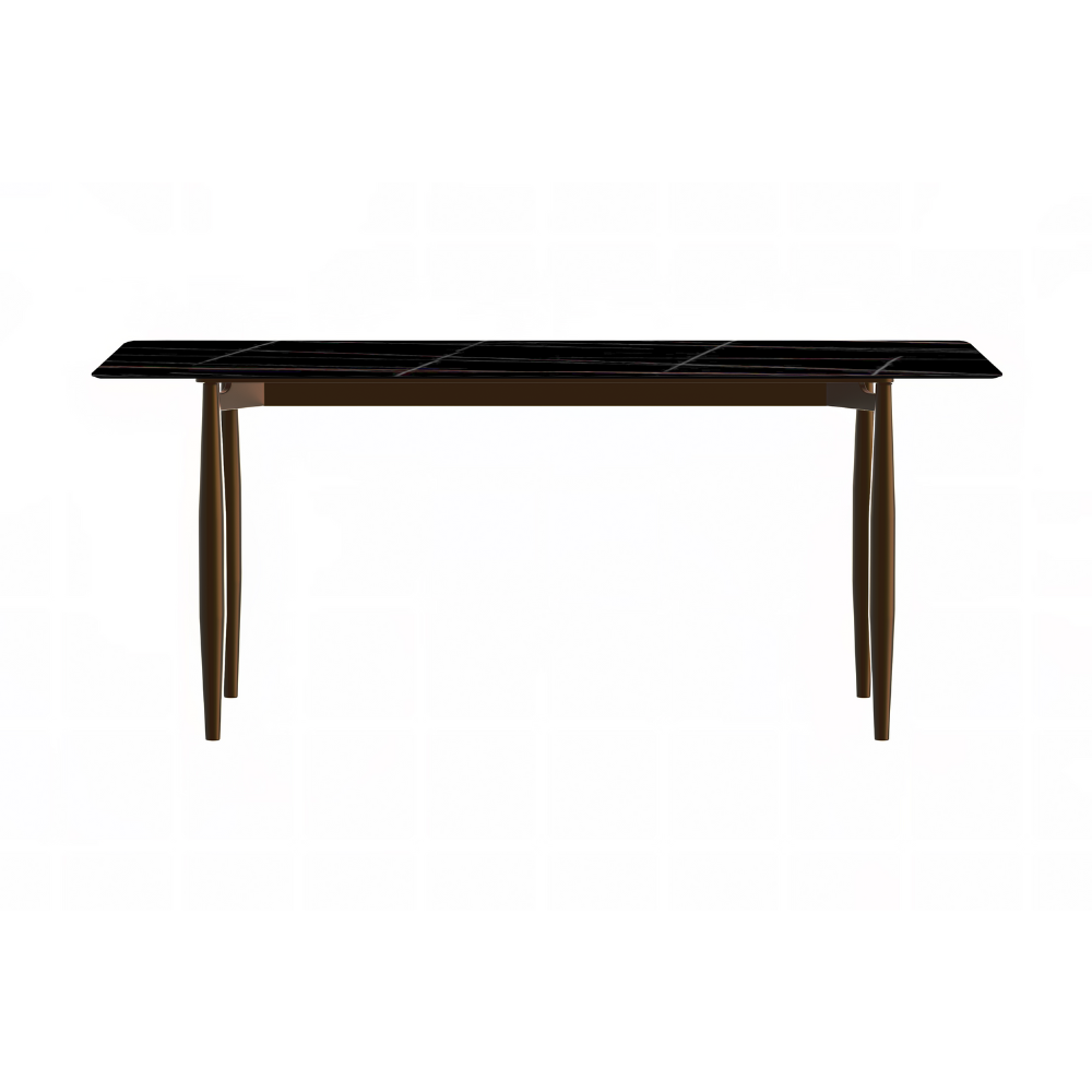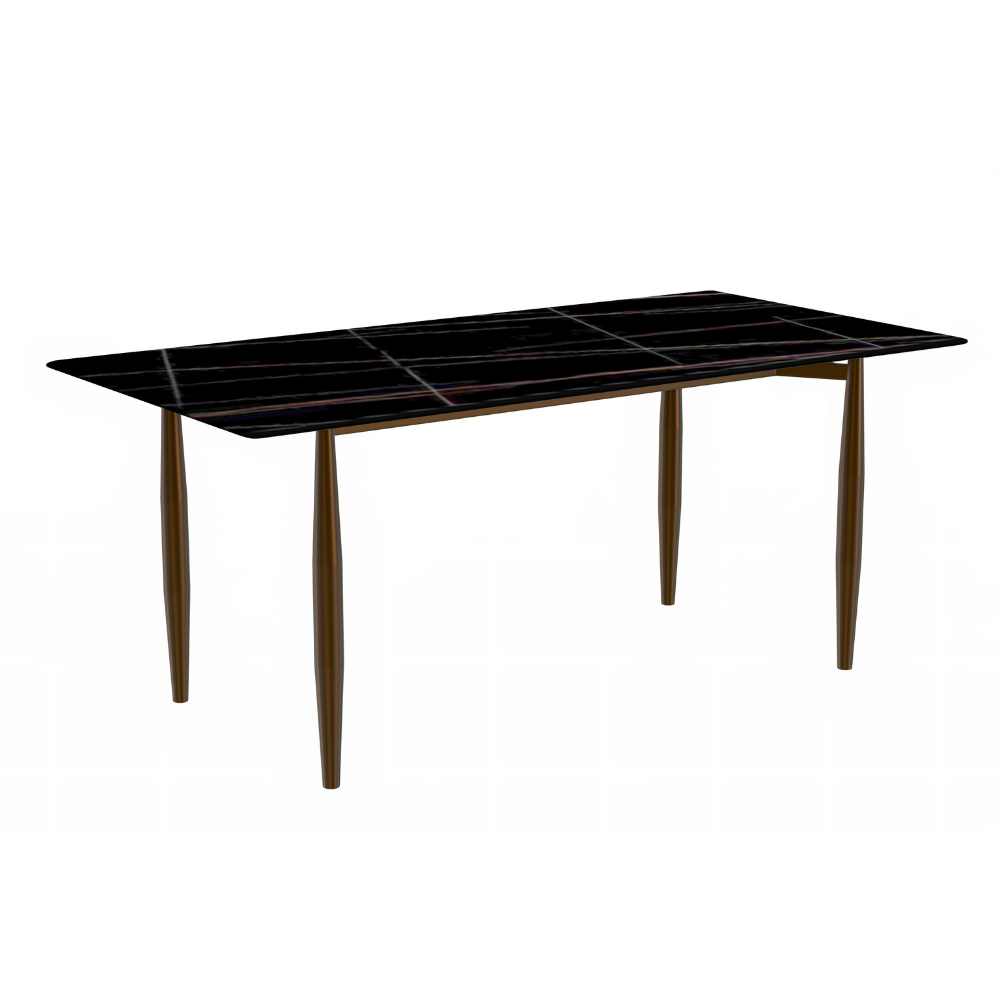 Zinti Series Modern Dining Table Bronze Base, With 71" Black/Gold Sintered Stone Top