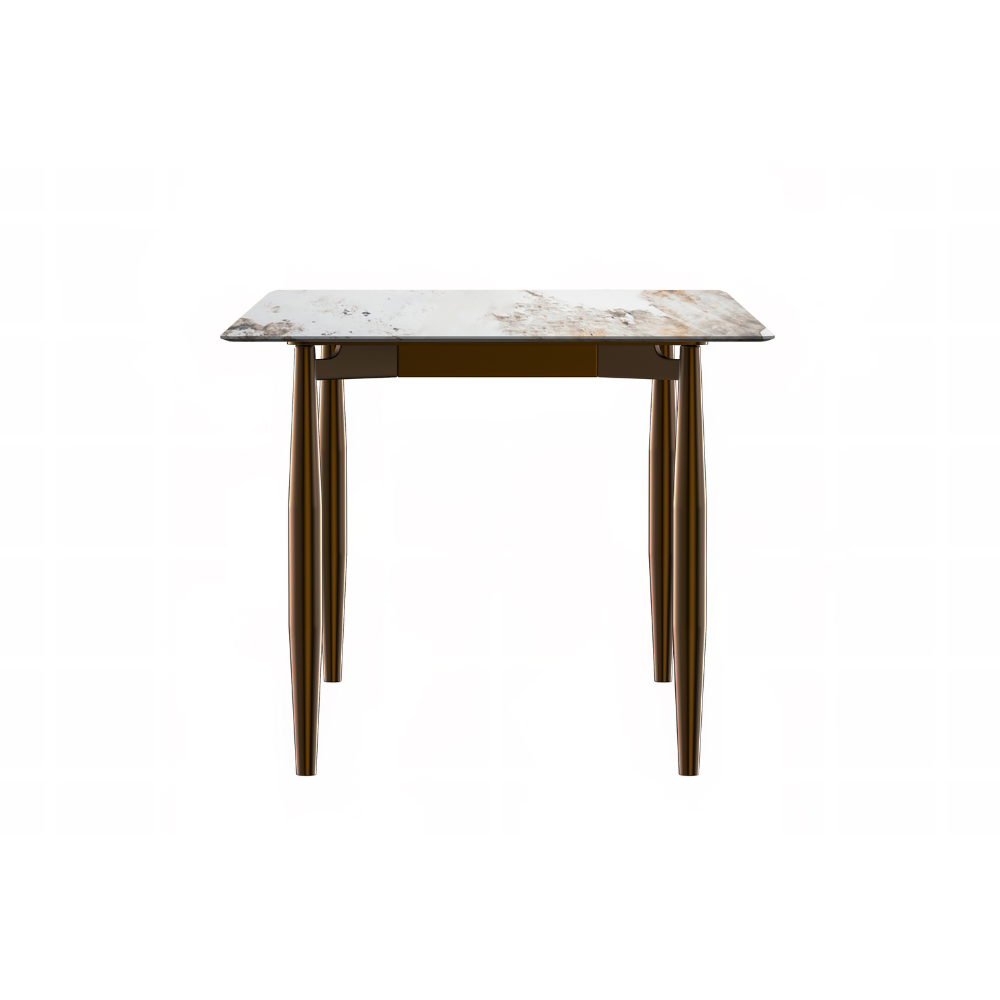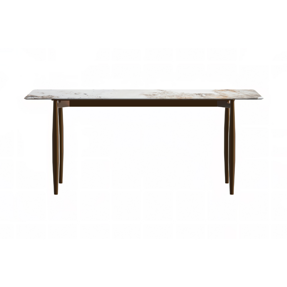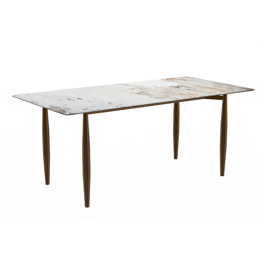 Zinti Series Modern Dining Table Bronze Base, With 71" White Grey Sintered Stone Top