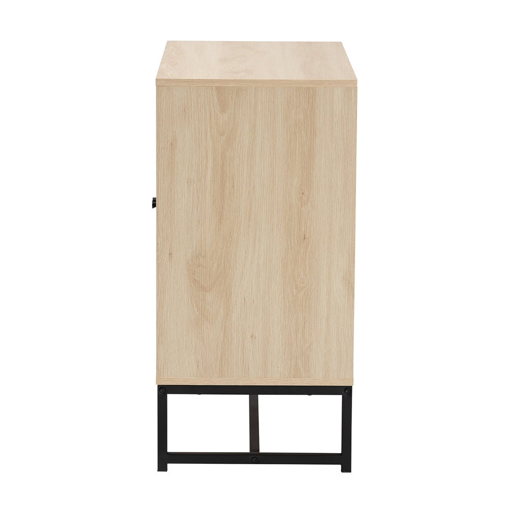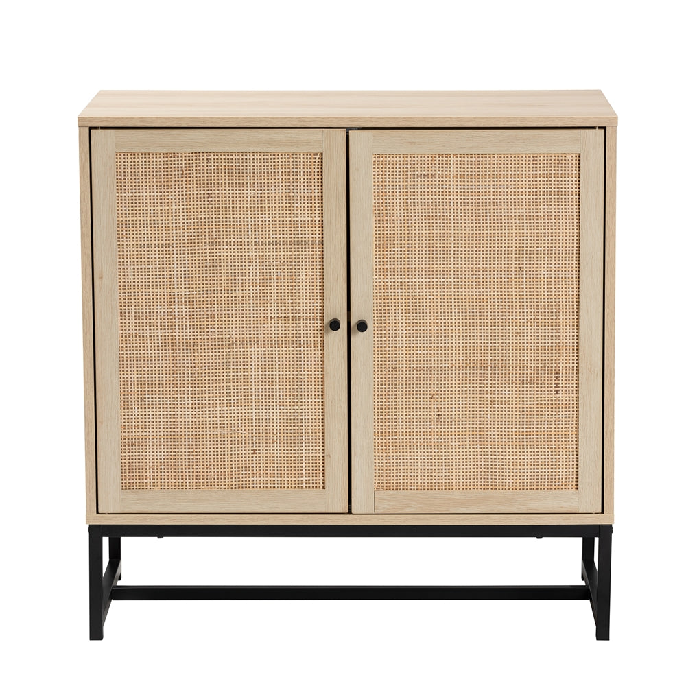 Caterina Mid-century Modern Transitional Natural Brown Finished Wood And Natural Rattan 2-door Storage Cabinet
