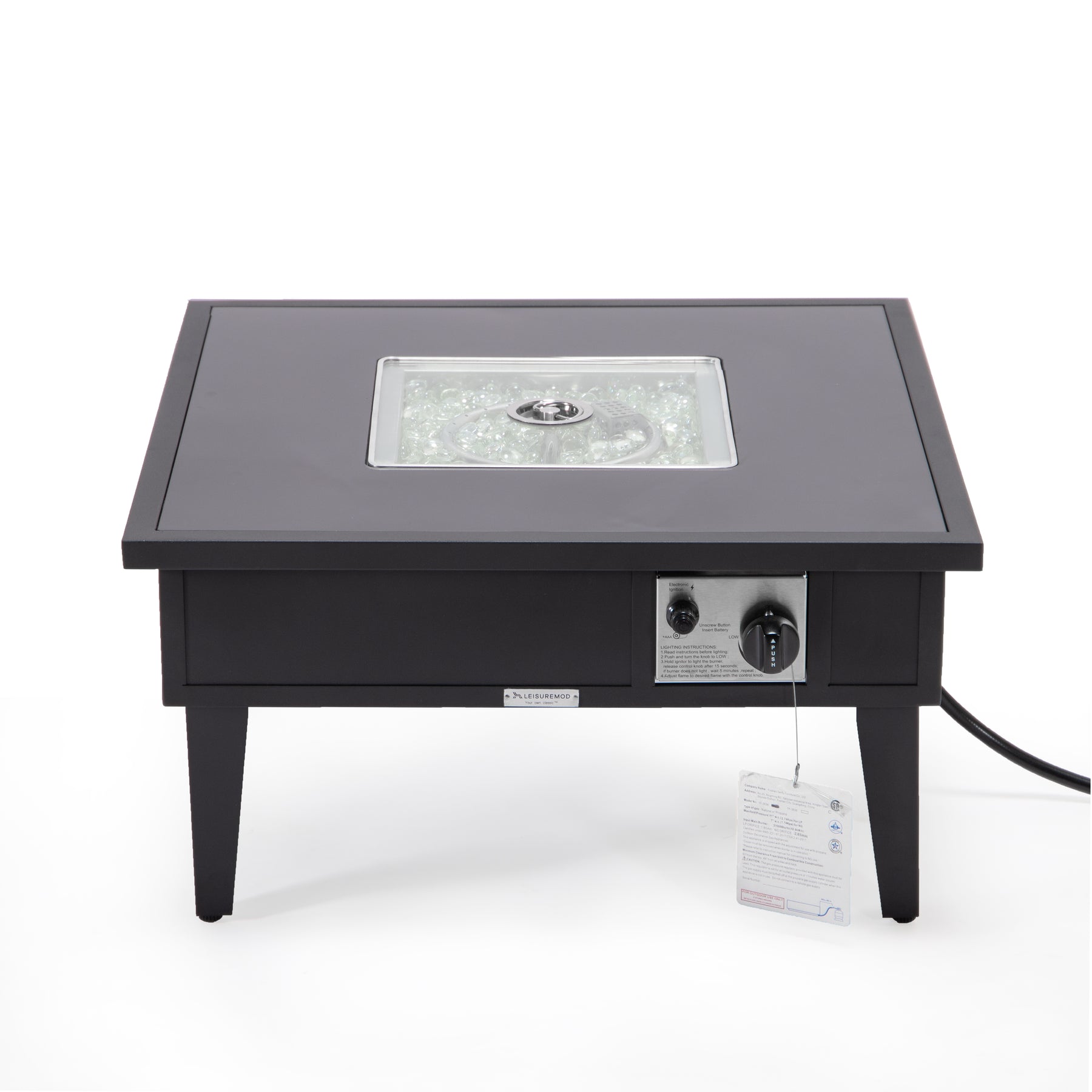• The modern square fire pit table features a powder-coated finish, providing a sleek and durable surface. This finish not only adds a touch of elegance but also protects the aluminum frame from corrosion, and other outdoor elements.