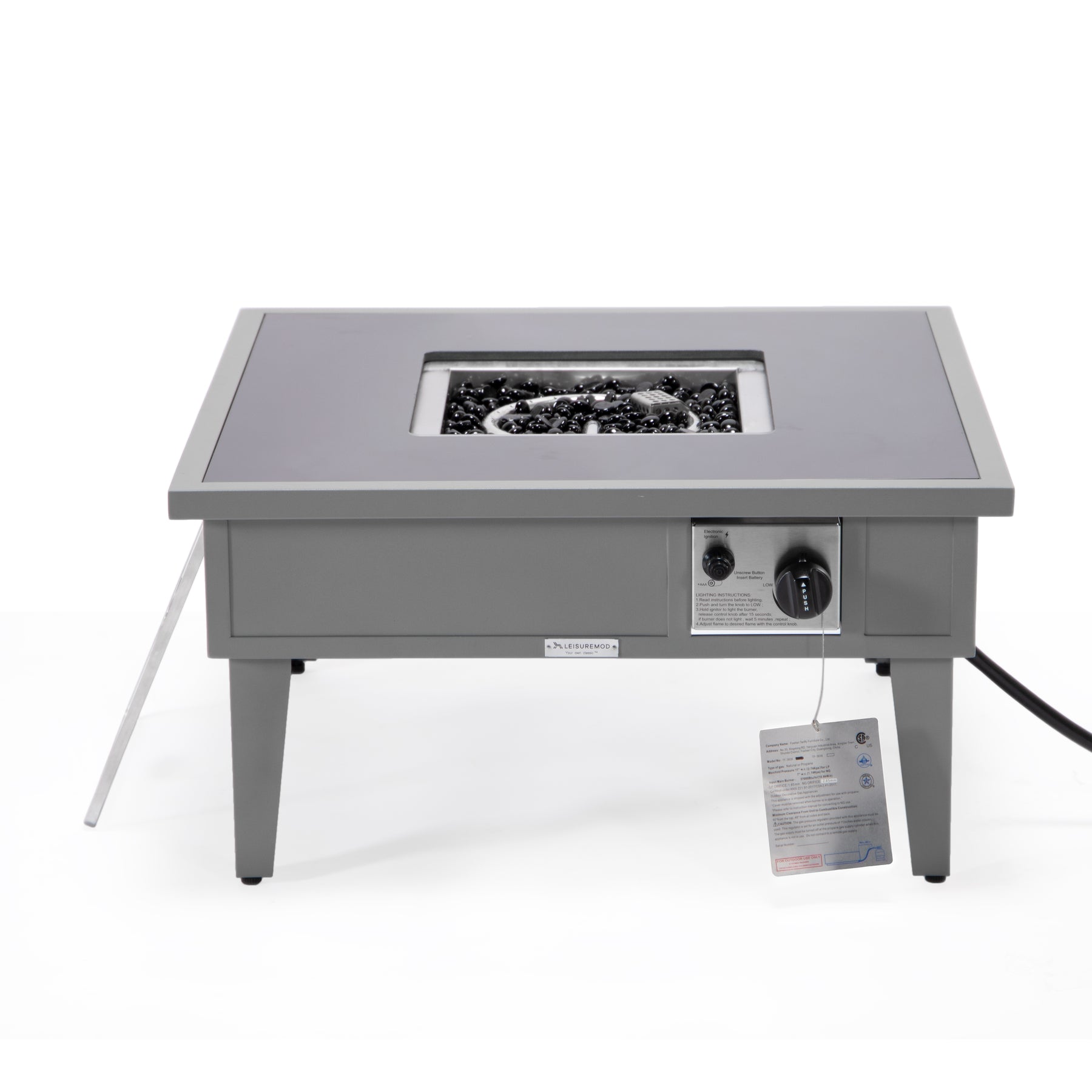 - One of the standout features of the modern square fire pit table is its 37,000 BTU CSA-certified burner. This powerful burner provides ample heat to keep you and your guests warm and comfortable, even on chilly evenings.