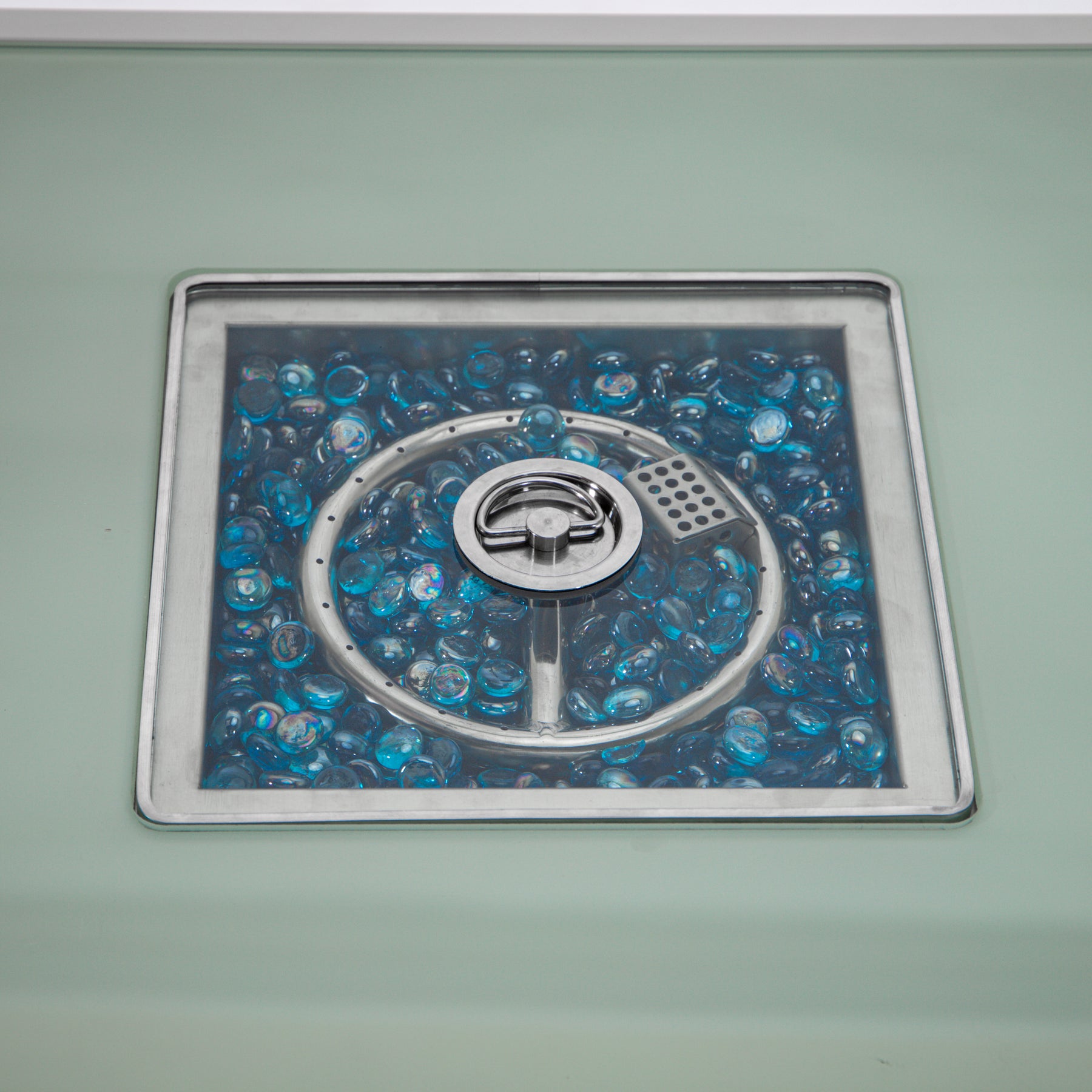 - The modern square fire pit table features a powder-coated finish, providing a sleek and durable surface. This finish not only adds a touch of elegance but also protects the aluminum frame from corrosion, and other outdoor elements.