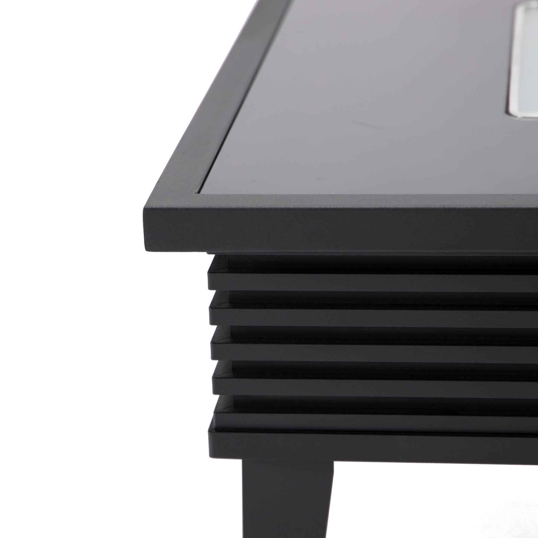 - The modern square fire pit table features a powder-coated finish, providing a sleek and durable surface. This finish not only adds a touch of elegance but also protects the aluminum frame from corrosion, and other outdoor elements.