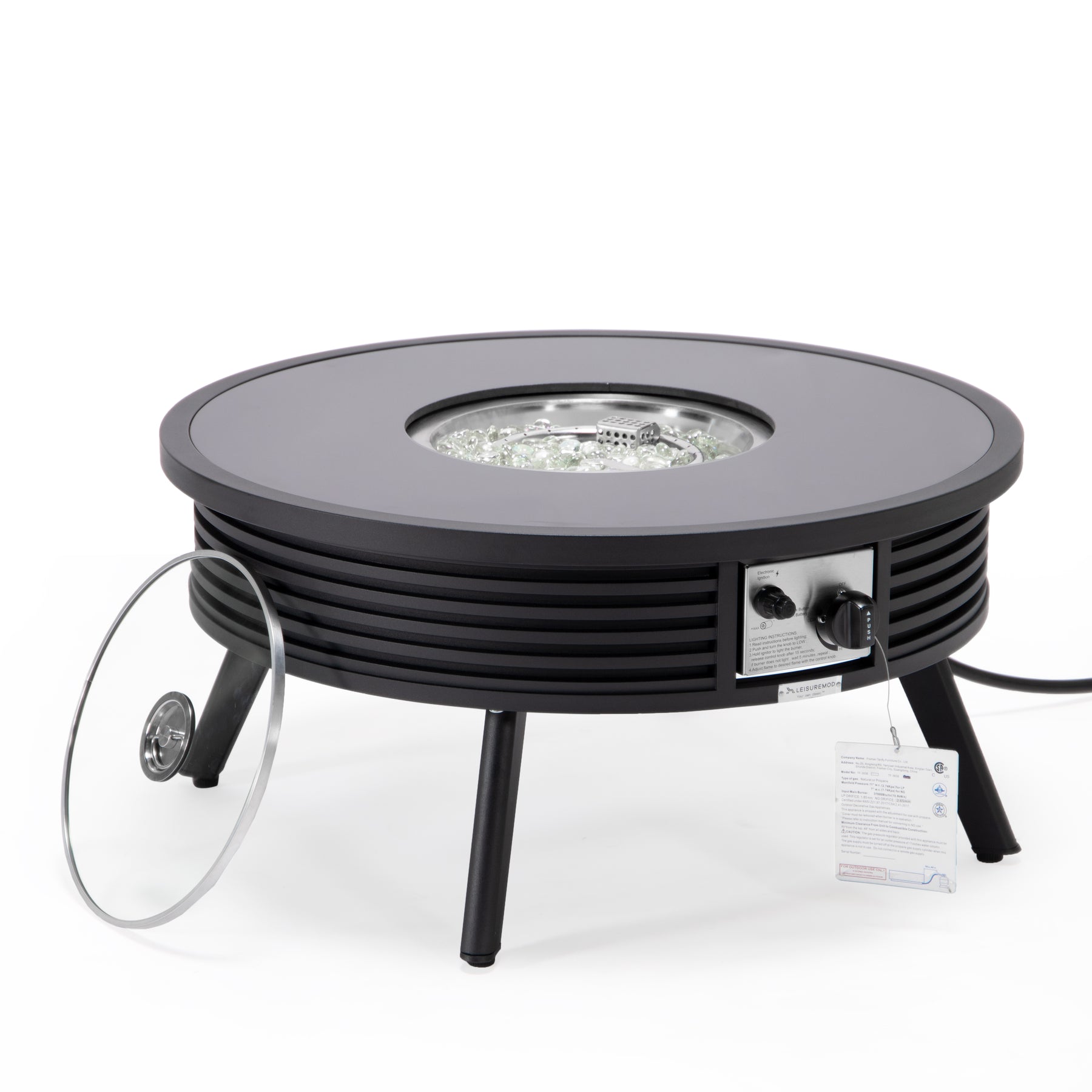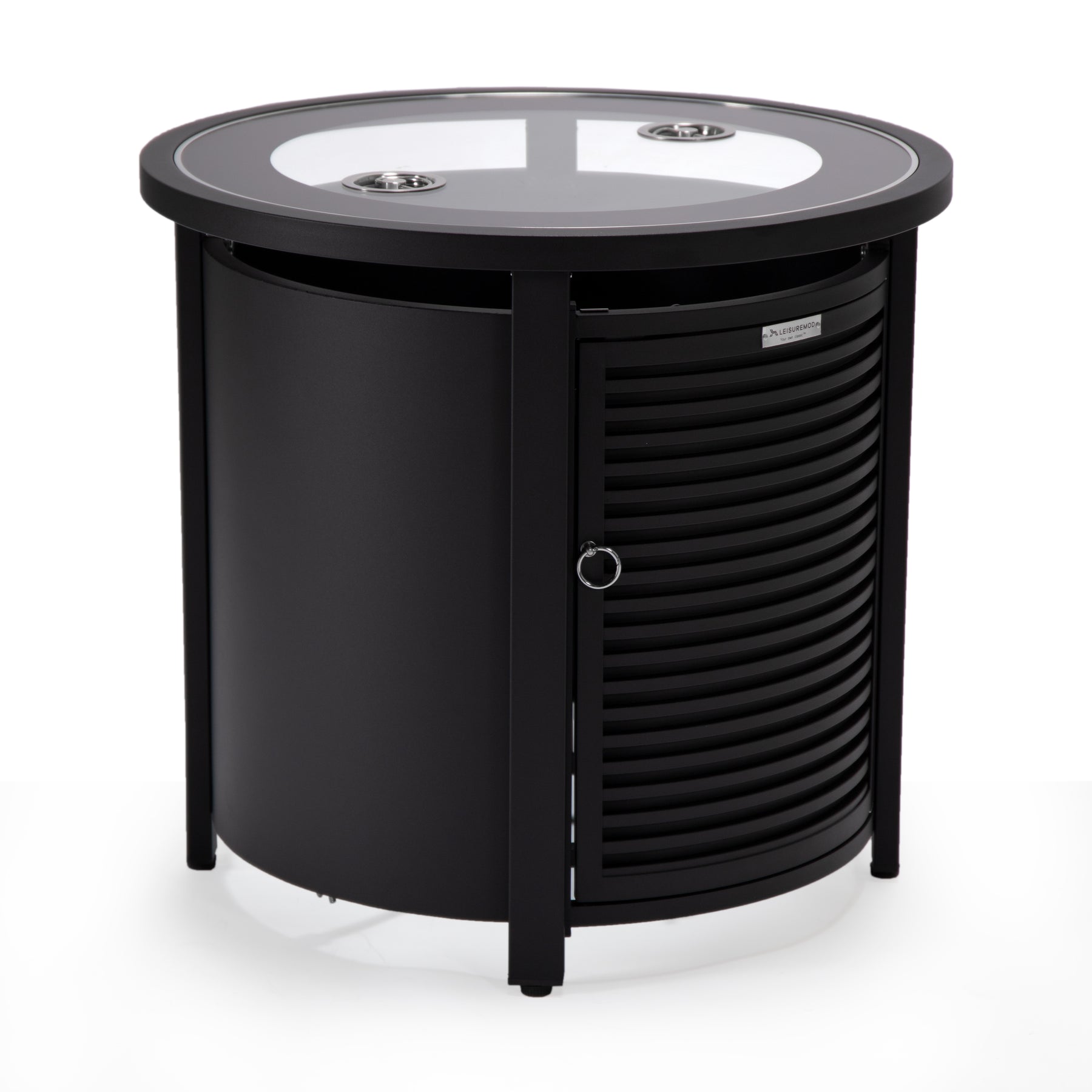 Create a warm and inviting atmosphere in your outdoor space with the Walbrooke Fire Pit and Tank Cover Set. Both the fire pit and tank holder are versatile addition to your patio set as it doubles as a side table, providing convenience and functionality to your outdoor space. This set allows you to experience the ultimate backyard ambiance throughout the year. Gather around the cozy fire, enjoying food and drinks, while being captivated by the mesmerizing flames. Equipped with a 37,000 BTU CSA-certified burner, this fire pit offers the pleasures of a classic fire without the hassle of dealing with ashes. The lid provides the option to close the surface top, transforming the fire pit into a stylish tabletop, perfect for serving refreshments or displaying decorative items. Crystal stones are included to beautifully accentuate the flames, adding an element of elegance to your outdoor space. The fire pit is equipped with a tempered glass shield, ensuring safety while enjoying the warmth of the flames. Lighting the fire pit is a breeze with the multi-spark electronic ignition system. This convenient feature, coupled with an adjustable flame, allows you to easily control the intensity of the fire. The ignition system is battery-powered, utilizing AAA batteries, providing a hassle-free lighting experience. The tank holder features a cleverly designed space for a gas tank, allowing you to keep it hidden from view, eliminating any unsightly appearance that may disrupt the beauty of your patio area. Crafted with high-quality materials and designed to withstand various weather conditions, the Walbrooke Fire Pit and Tank Cover set will continue to impress and delight for years to come.