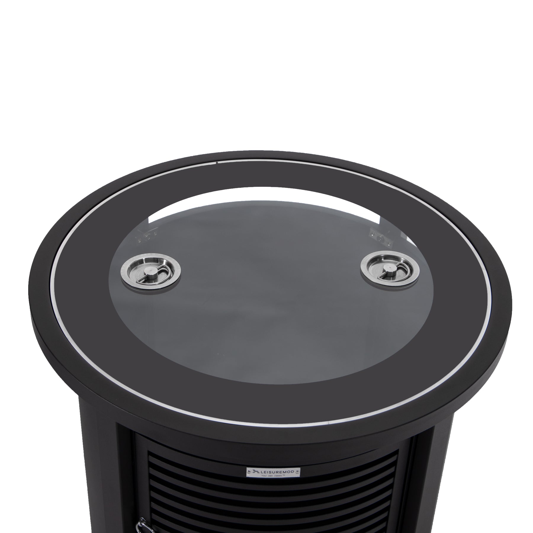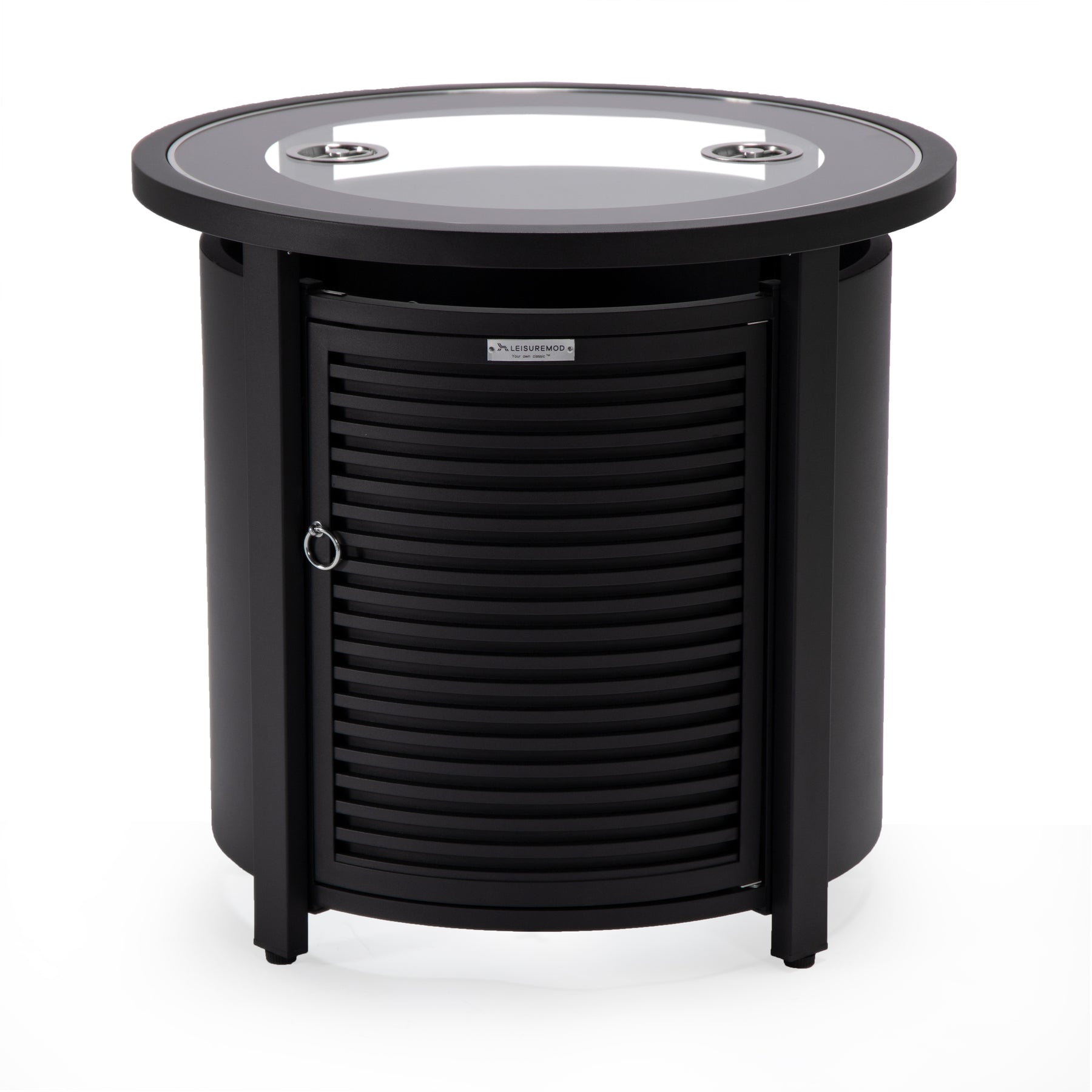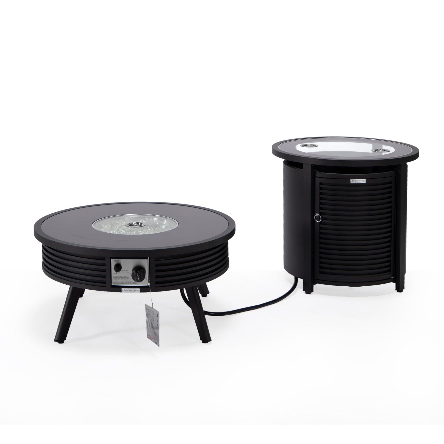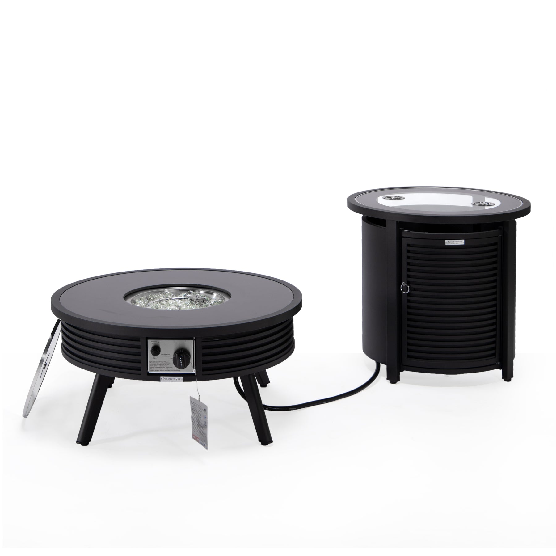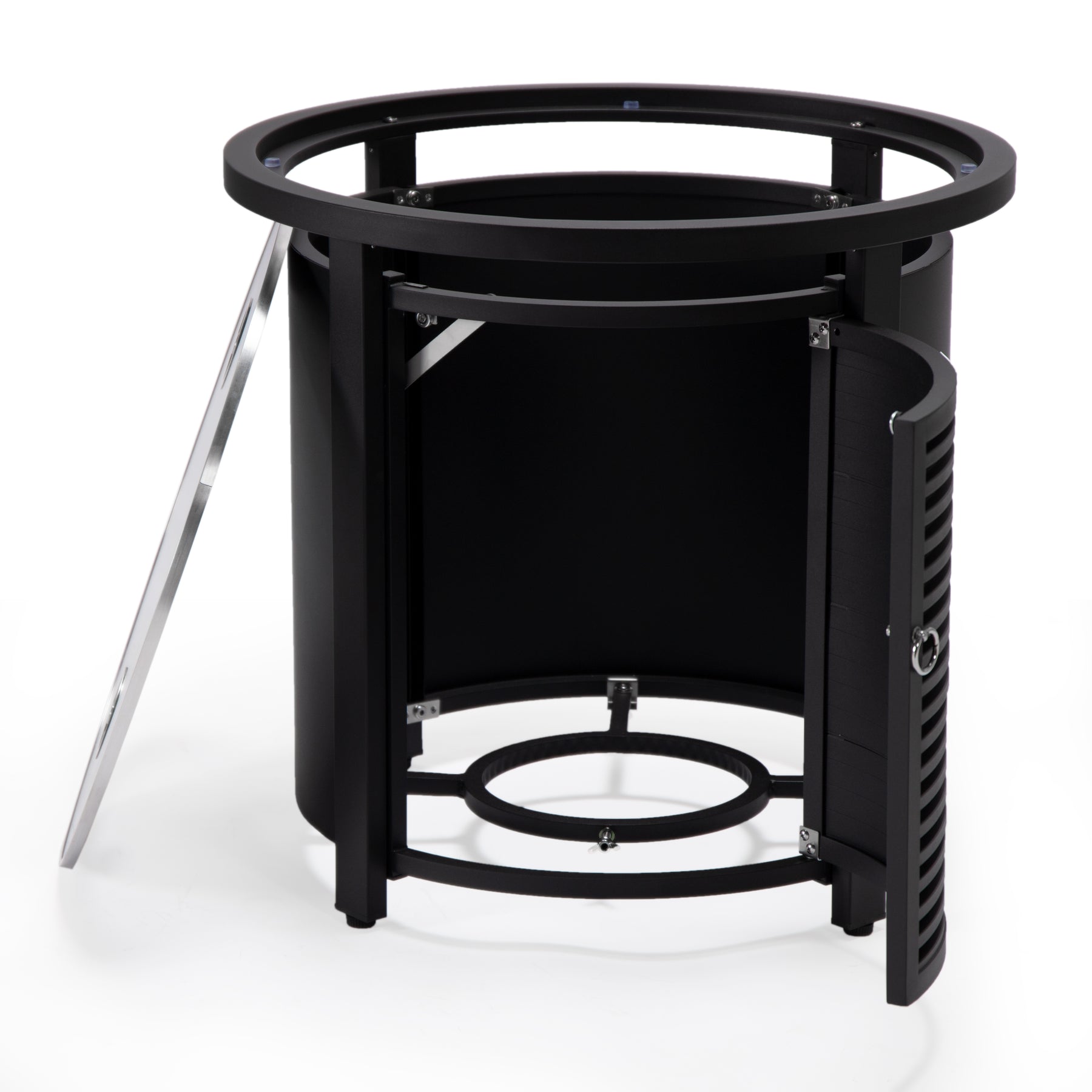 Walbrooke Patio Round Fire Pit and Tank Holder with Slats Design in Black