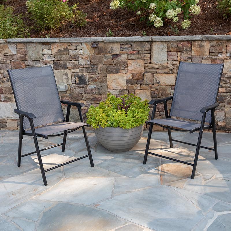 Black Outdoor Folding Patio Sling Chair (2 Pack)