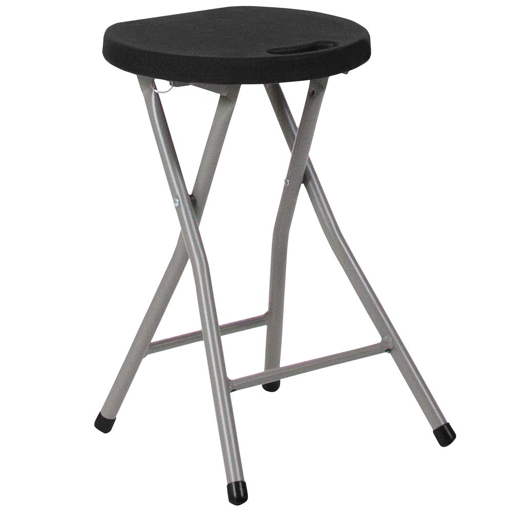 Foldable Stool with Black Plastic Seat and Titanium Gray Frame