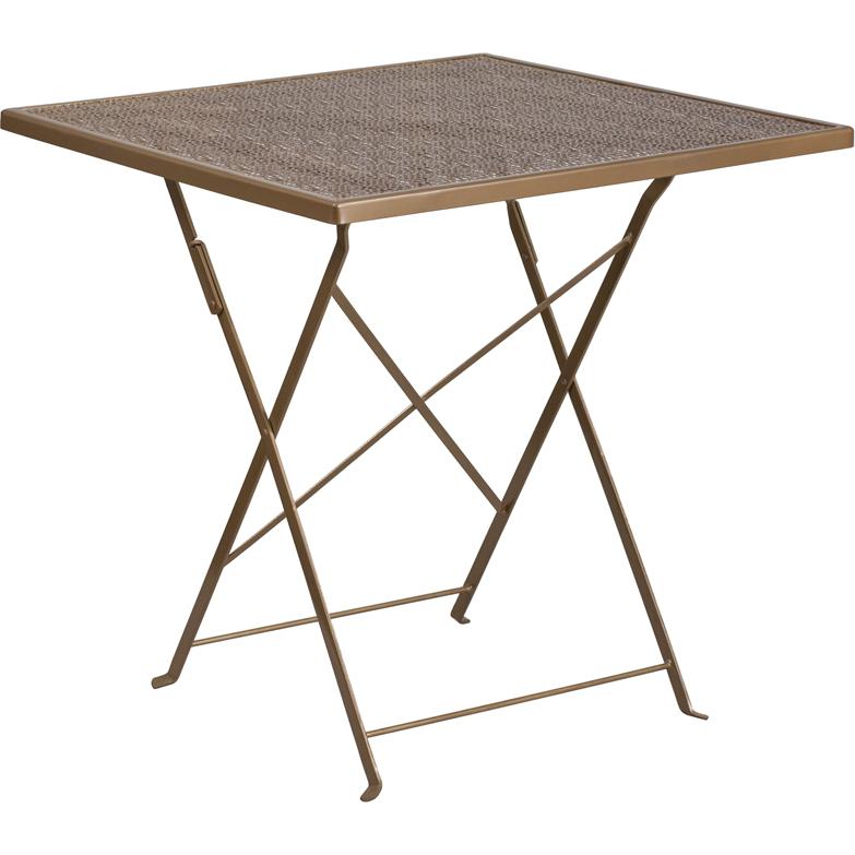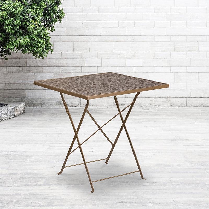Commercial Grade 28" Square Gold Indoor-Outdoor Steel Folding Patio Table