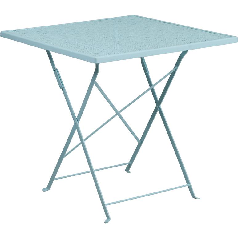 Commercial Grade 28" Square Sky Blue Indoor-Outdoor Steel Folding Patio Table