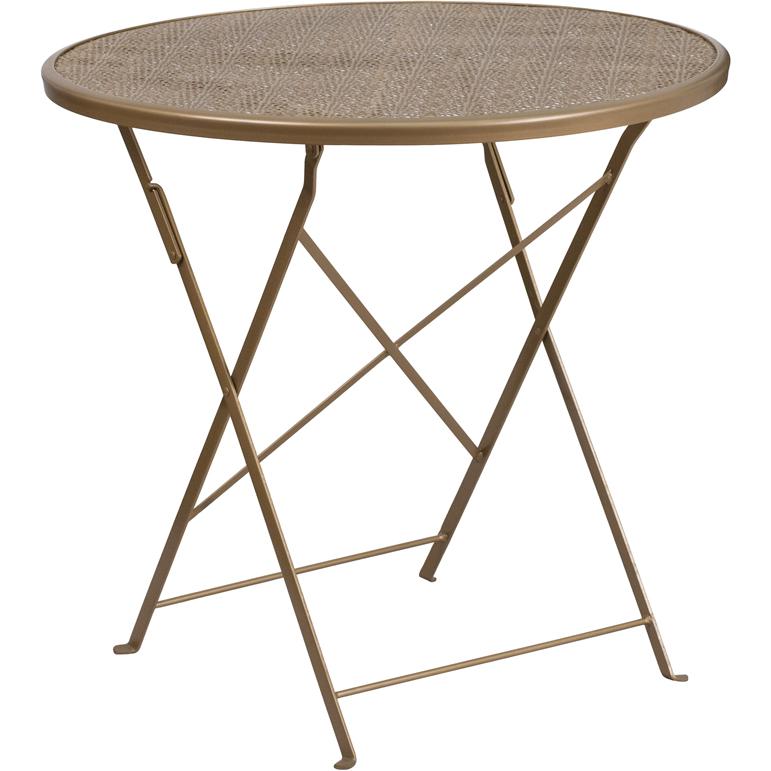 Commercial Grade 30" Round Gold Indoor-Outdoor Steel Folding Patio Table