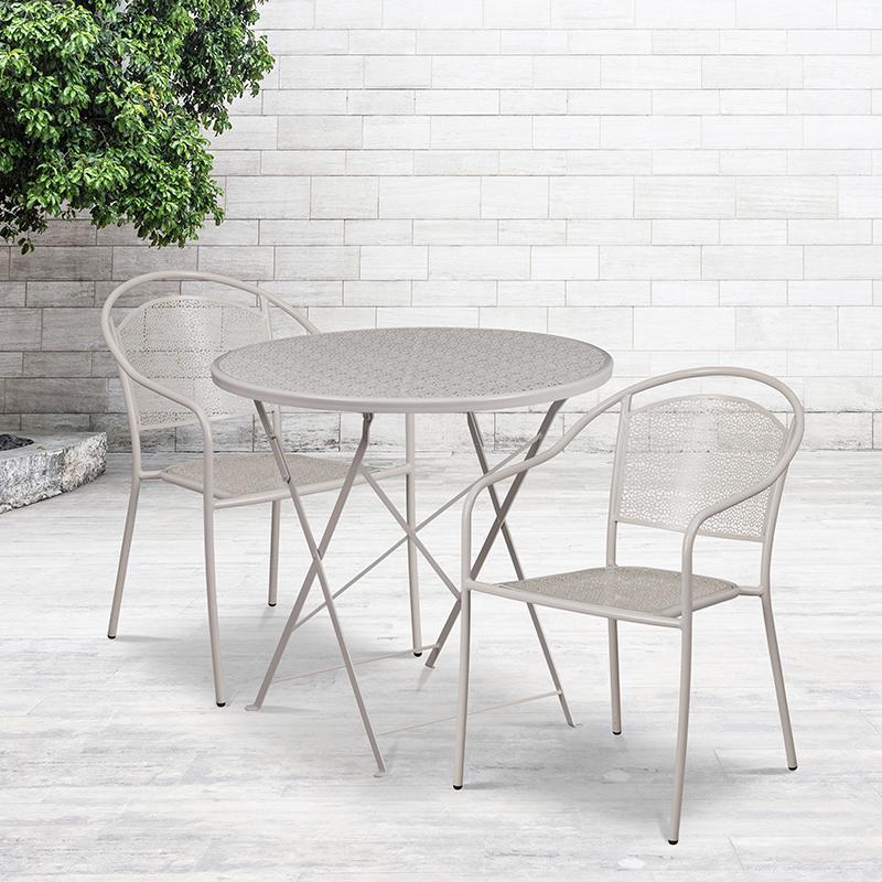 Commercial Grade 30" Round Light Gray Indoor-Outdoor Steel Folding Patio Table Set with 2 Round Back Chairs