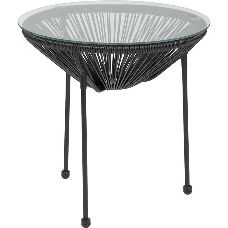 Valencia Oval Comfort Series Take Ten Black Rattan Table with Glass Top