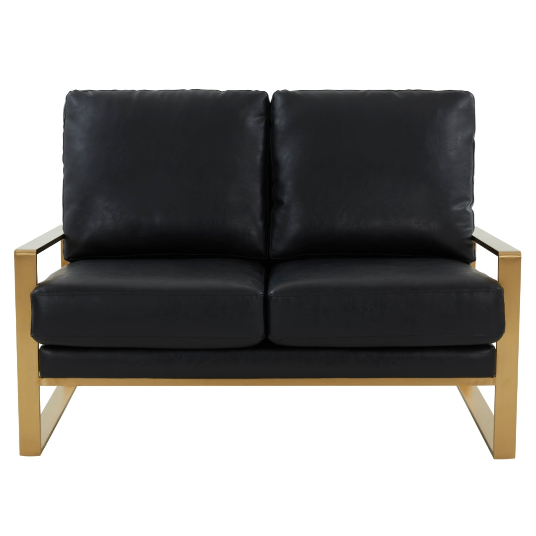 Jefferson - Leather Loveseat - Gold Frame - Black