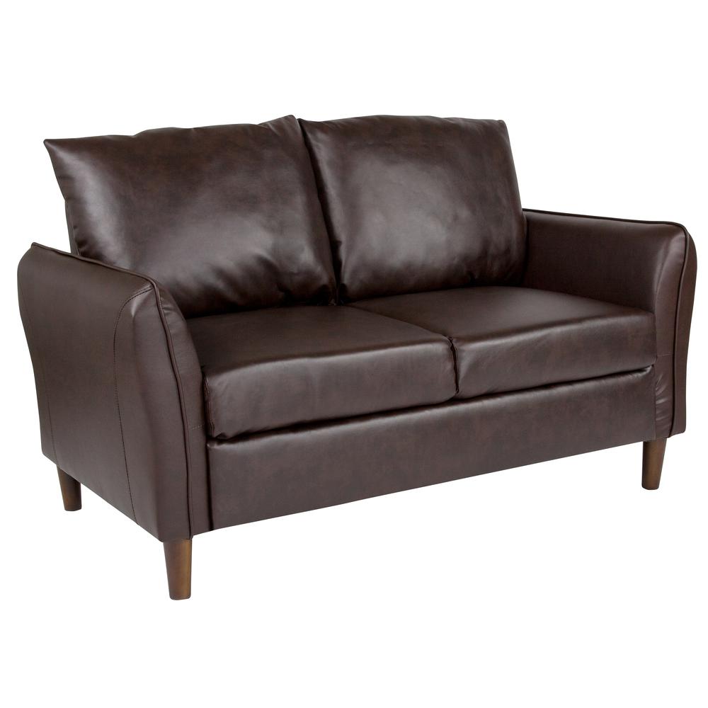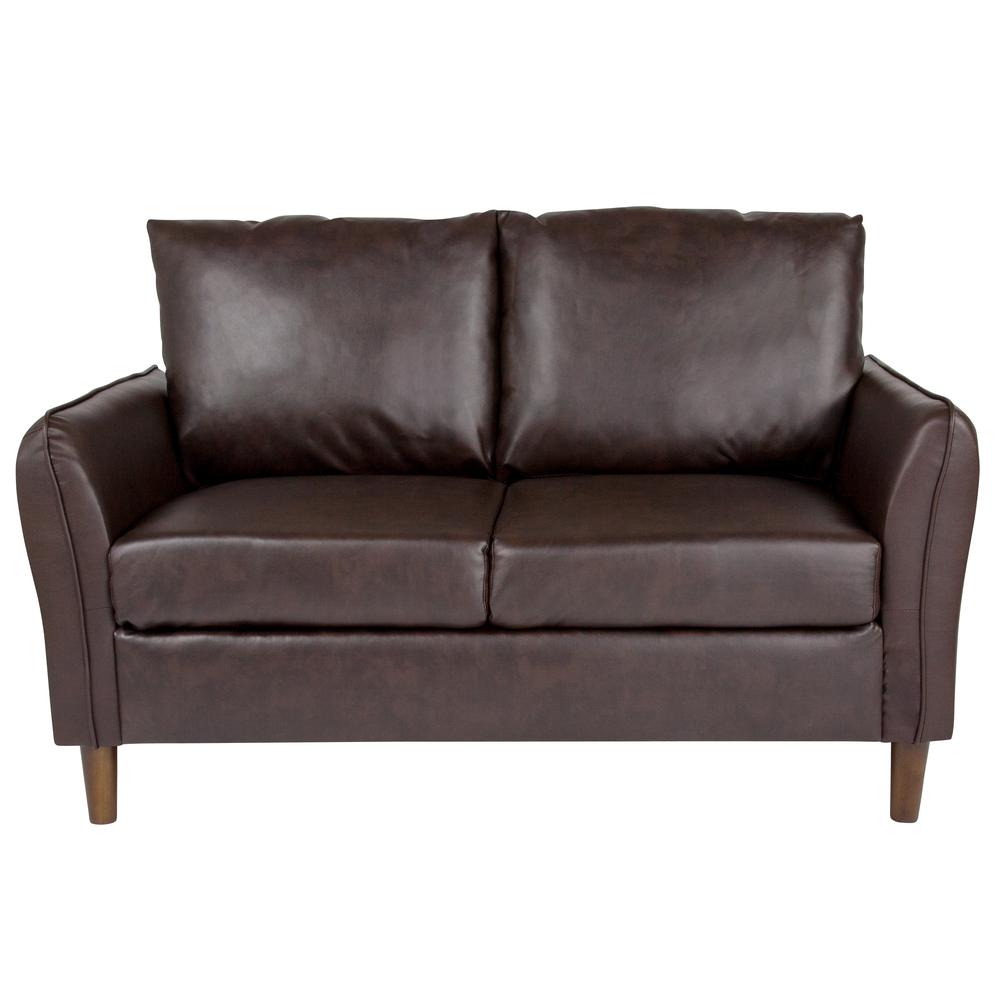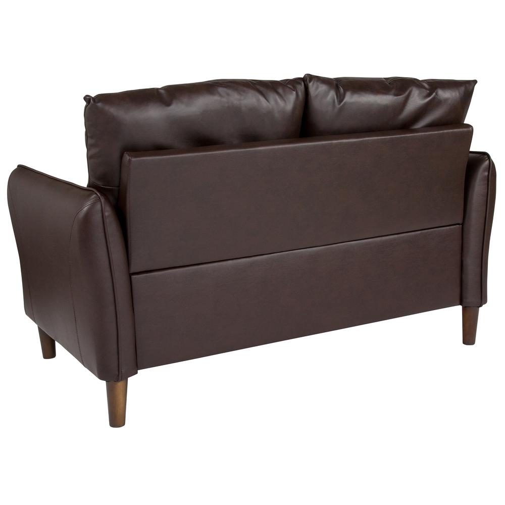 Milton Park Upholstered Plush Pillow Back Loveseat in Brown LeatherSoft