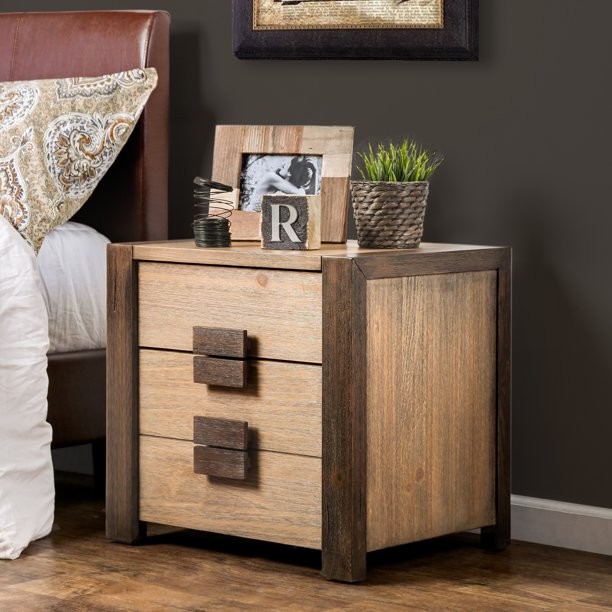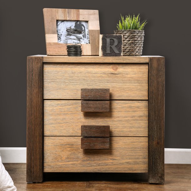 Assaro Rustic Style Natural Tone, 3-Drawer Nightstand