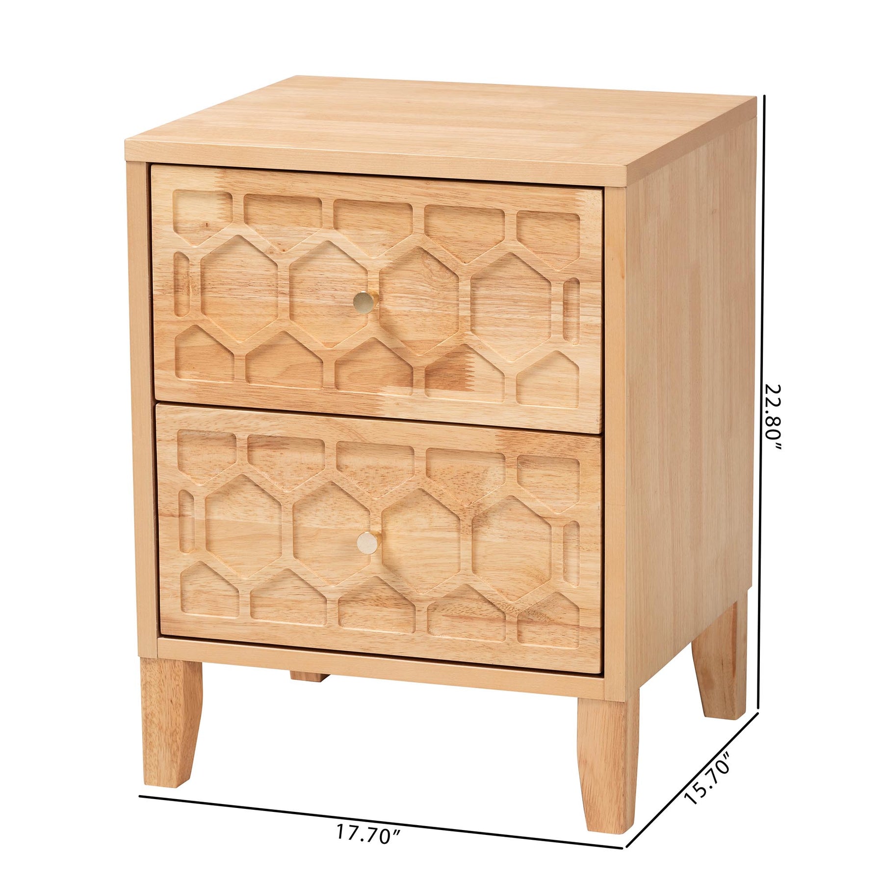 Hosea Japandi Carved Honeycomb Natural 2-drawer Nightstand
