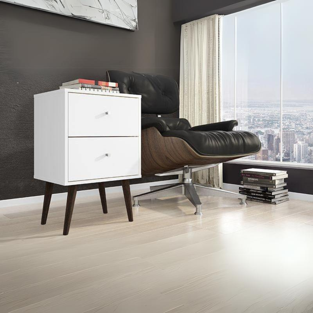 Liberty Mid-Century - Modern Nightstand 2.0 with 2 Full Extension Drawers in White with Solid Wood Legs